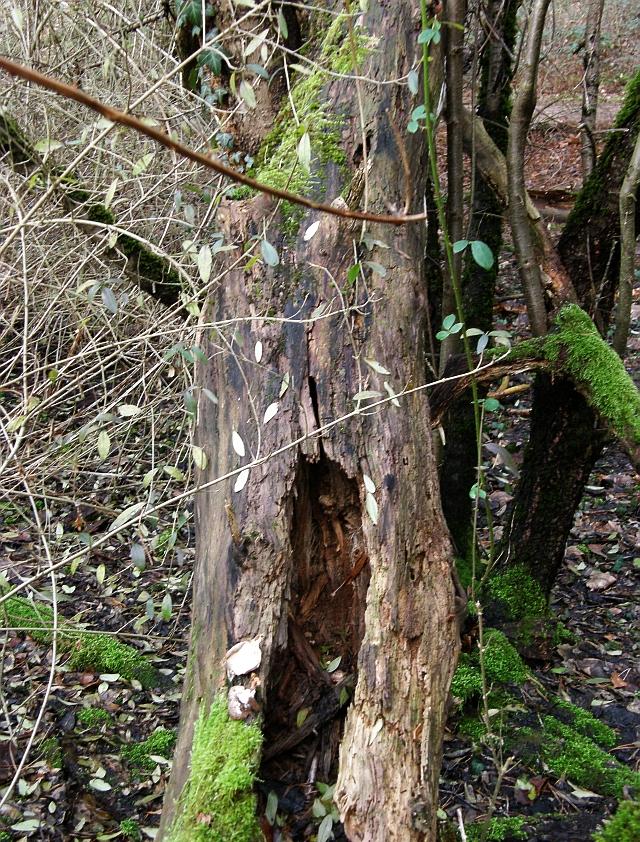 Die beiden gefundenen Fruchtkörper saßen in der Höhlung am unteren Stammbereich.