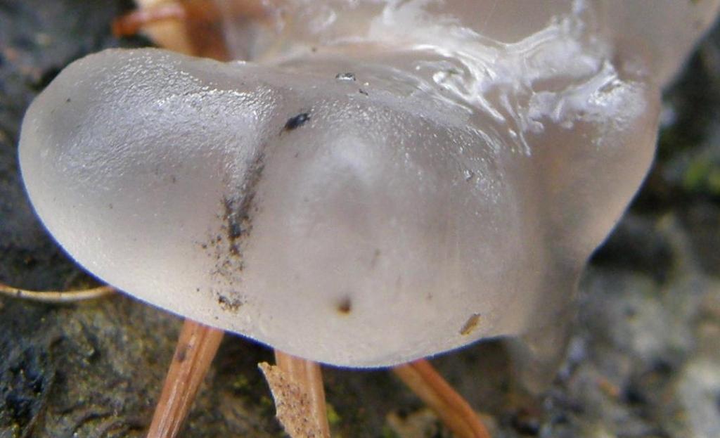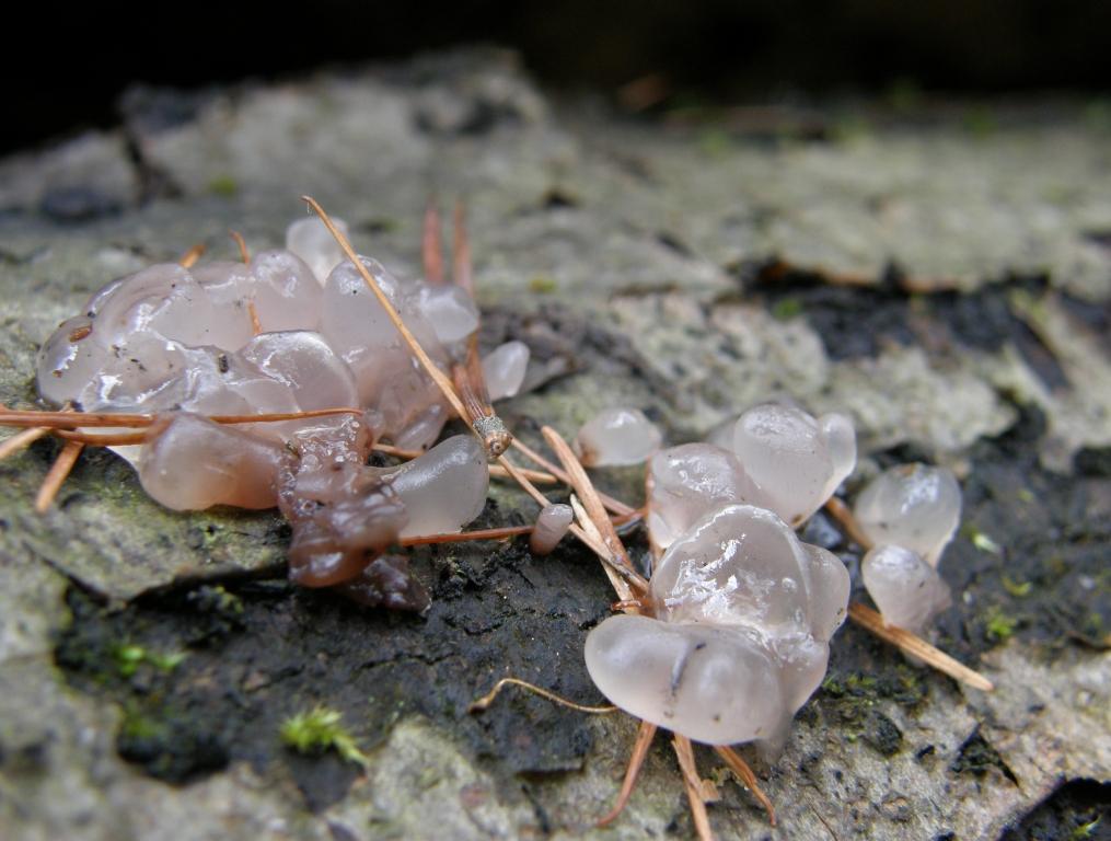 nächstes Bild: Exidia saccharina ist das nicht. Der sieht anders aus und gehört an Nadelholz. Hier könnte Exidia thuretiana eher passen. Glaube ich aber auch nicht. Wie wäre es mit Exidia cartilaginea (knorpeliger Drüsling)? Oder - wenn da opake Einlagerungen in hyaliner Masse sind - Myxarium nucleatum (Körnchen - Drüsling)? Was auch noch in Frage käme, wäre vielleicht Tremella globispora (frag' mich da bitte nicht nach einem deutschen Namen...)
