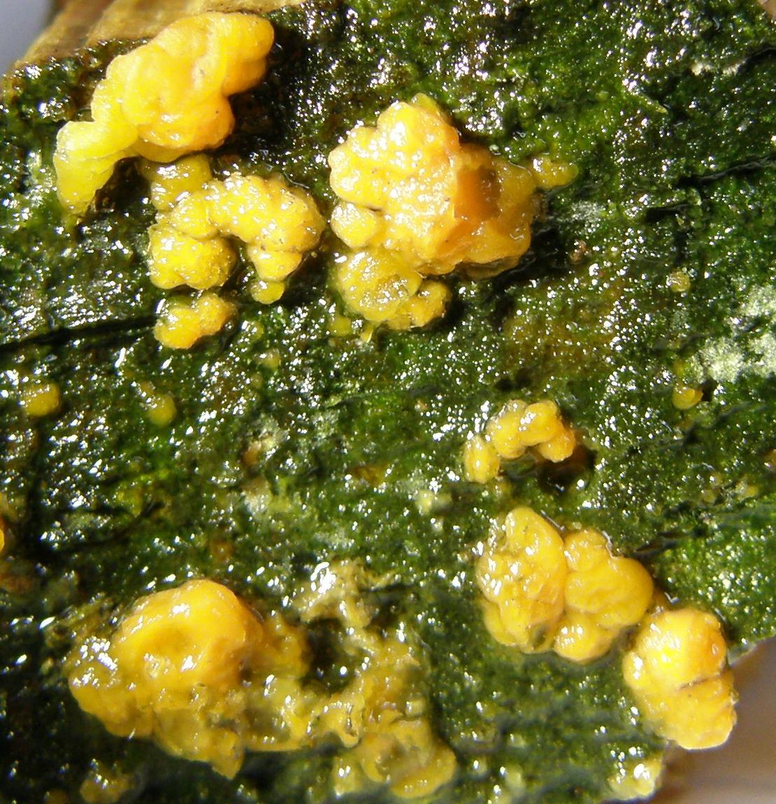 Ob nun aber mesenterica oder aurantia, da bin ich überfragt. Das dicke Substrat deutet eher auf aurantia hin. Auf die Form würde ich mich da nicht verlassen, beide Arten scheinen recht variabel zu sein. Gewissheit würden hier die Begleitpilze bringen, auf denen die Tremella wächst.