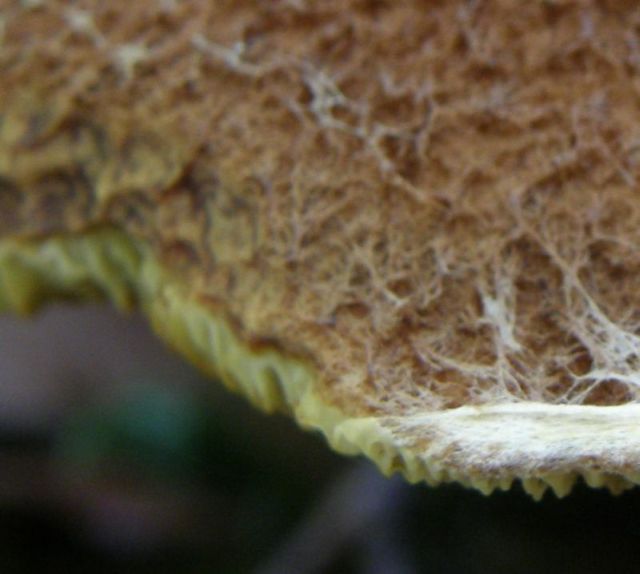 - Hutunterseite: Gestern meinte ich noch mit Lupe herablaufende, Lamellenähnliche Strukturen zu erkennen. Heute nicht mehr. Entweder habe ich Kratzer auf der Netzhaut, oder die Lamellen sind über Nacht im Kühschrank kollabiert.