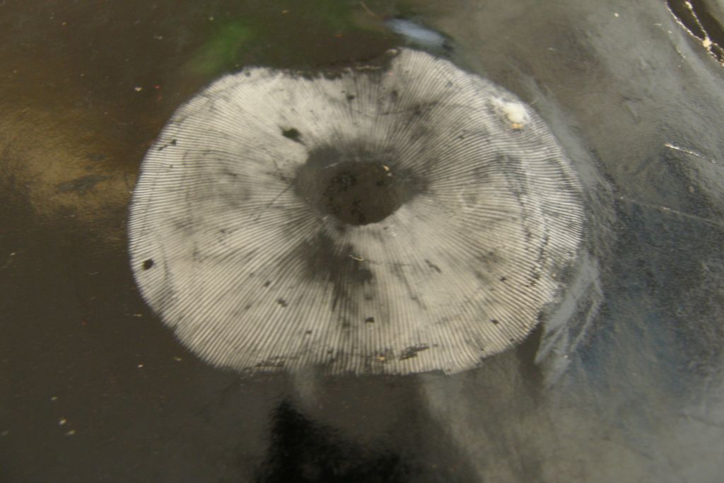 Ich würde schon sagen, daß sich die Farbe erst im Anschnitt verändert hat. Allerdings... Wie schon beschrieben, blasste das blaugrün nach einer Weile zu grau aus. Zwar habe ich vor Allem deswegen die initiale Färbung als Reaktion auf Sauerstoff angenommen, aber es wäre ja auch möglich, daß eben erst das Ausblassen die Reaktion auf die Schnittverletzung war.