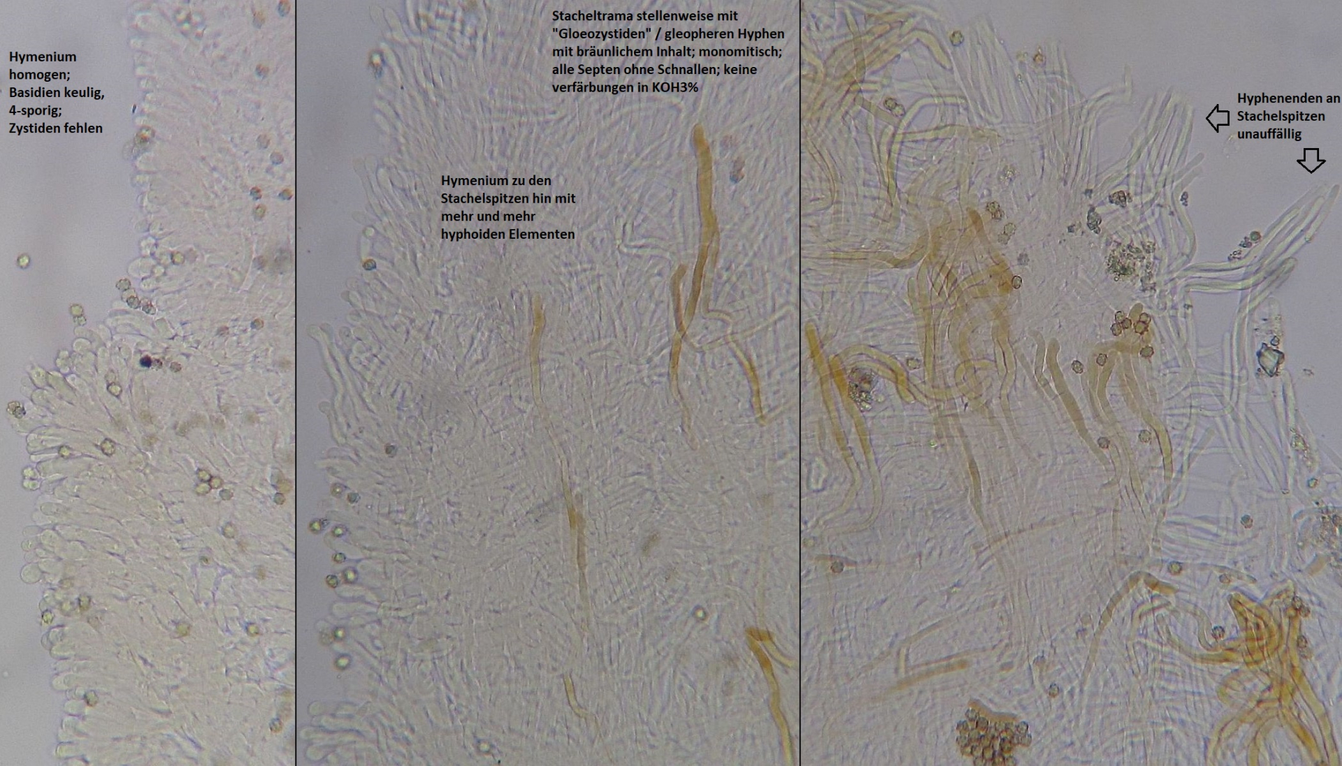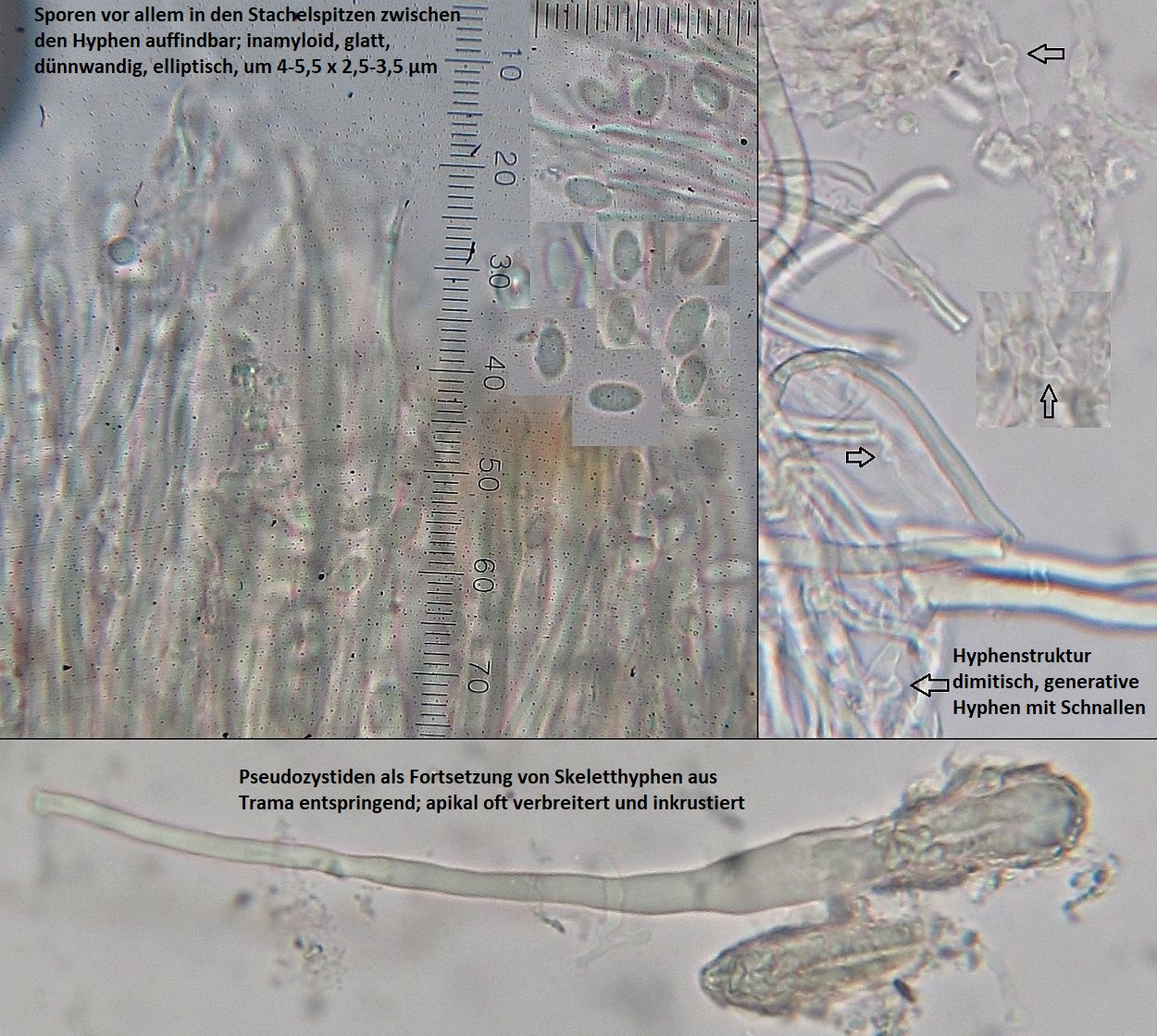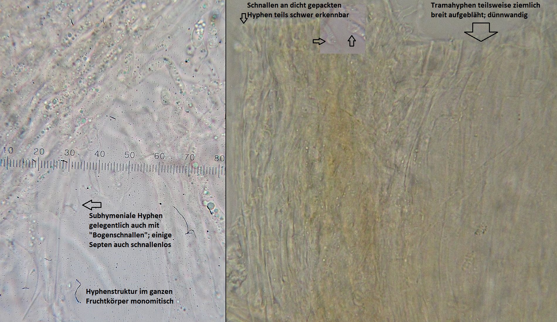 Besteht ausschließlich aus Hyphen. Keine Sporen (weder Konidien, noch geschlechtliche, noch irgendwas). Auch keine Basidien, Zystiden und Sonstiges, sondern einfach nur Hyphen. Könnte man also höchstens genetisch irgendwie einzuordnen versuchen.