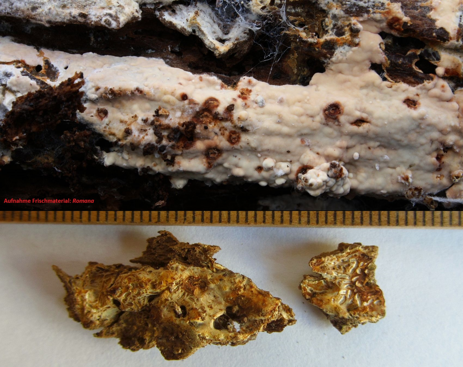 Der letzte Pilz, in Beitrag #6 ist dann wieder was Hübsches (und eher Seltenes). Das ist Fibrodontia gossypina: