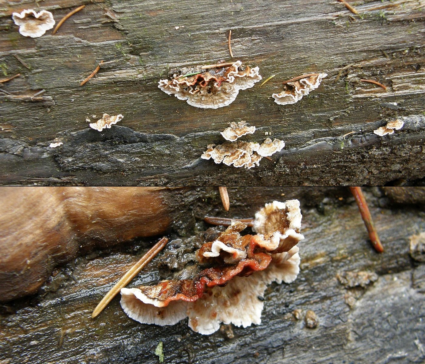 Nr. 9: Sehr spannend! Hast du davon was mitgenommen? Das könnte auch ein Fomitopsis sein, in der Gattung gibt es noch ein paar Arten die so oder so ähnlich aussehen können. zB Fomitopsis iberica, eine nicht ganz so seltene, mediterran verbreitete Art, zu der sich auch einige Bilder finden lassen.