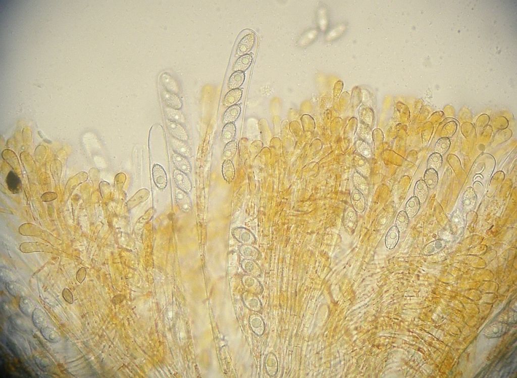Um die beiden mikroskopisch zu untescheiden, müsstest du glaube ich die Tramahyphen (nicht Hymenium oder Subhymenium!) in KOH betrachten: Bei palmata blau, bei anthocephala nicht (aber dort Subhymenium pp. in KOH grünblau).