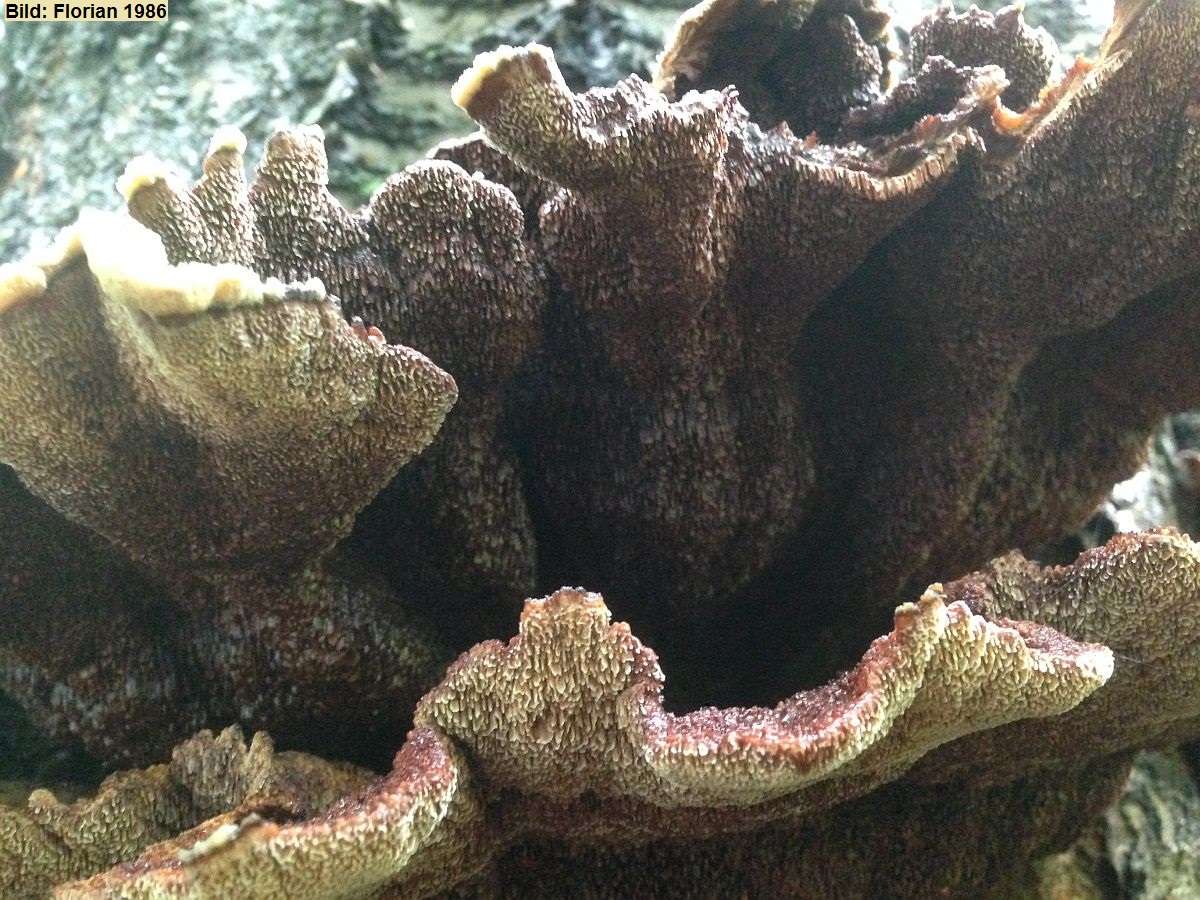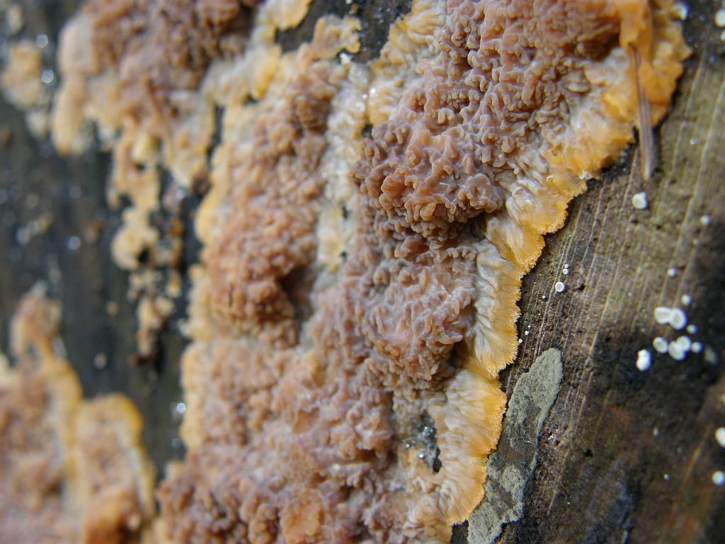 Ihr habt euch da wirklich beachtlich geschlagen, ich galube so viele 10er gab's noch nie. Dennoch ist dieser Pilz aus der Perspektive nicht unbedingt leicht zu erkennen, es gibt schon ein paar ähnliche Phlebien und auch Arten aus anderen Gattungen. Allenaheliegenden und guten Vorschläge hätte ich (und habe ich in einem Fall) mit Gattungspunkten gewürdigt.