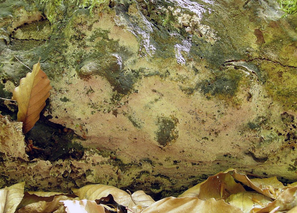Vorkommen: Die Verbreitungskarte bei >Pilze-Deutschland< hat mich einigermaßen überrascht. Zumindest in der (nördlichen) Oberrheinebene und angrenzenden Hügelländern (sofern einigermaßen warm und laubbewaldet) ist die Art einigemaßen häufig. Eigene Funde ergaben sich bisher nur an Laubholz, am häufigsten an Rotbuche, lt. Lit. (FE12) soll aber auch Nadelholz möglich sein. Die Fundstellen waren einerseits Auwälder (Hartholzauen, dort meist an Rotbuche aber auch Weichholzauen an indet. Laubholz), sowie Rotbuchen-Mischwälder der collinen Stufe auf trockenem bis feuchtem Untergrund an wärmebegünstigten Standorten, aber nicht sonnenexponiert, sondern eher im Schatten und Halbschatten geschlossener Wälder. Überwiegend an dickem, liegendem Laubholz (Stämme), einmal auch an einem nur armdünnen liegenden Ast, jedes Substrat war bisher gut durchfeuchtet, nie –žim Luftraum–œ (immer komplett liegend mit durchgehendem Bodenkontakt) und meist optimalmorsch.
