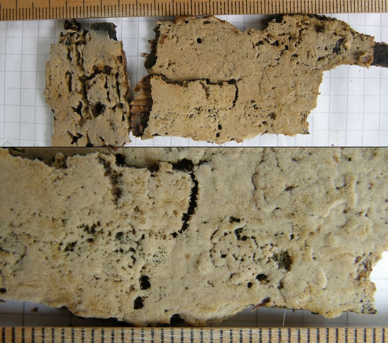 >Hyphoderma transiens = Variabler Rindenpilz<