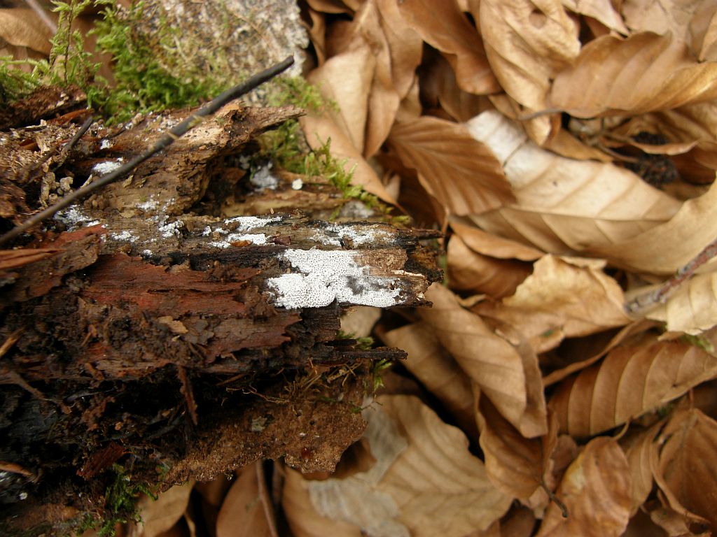 Vorkommen: ziemlich häufige und weit verbreitete Art; meistens an liegendem, gut feuchtem Laubholz ab der späten Initialphase, selten wohl auch an Nadelholz oder vom Holz auf abgestorbene Porlingsfruchtkörper übergehend; Gerne –žversteckt–œ wachsend, also an den Unterseiten liegender Äste und Stämme, in Höhlungen des Holzes, so daß man die Fruchtkörper erst beim Umdrehen findet.