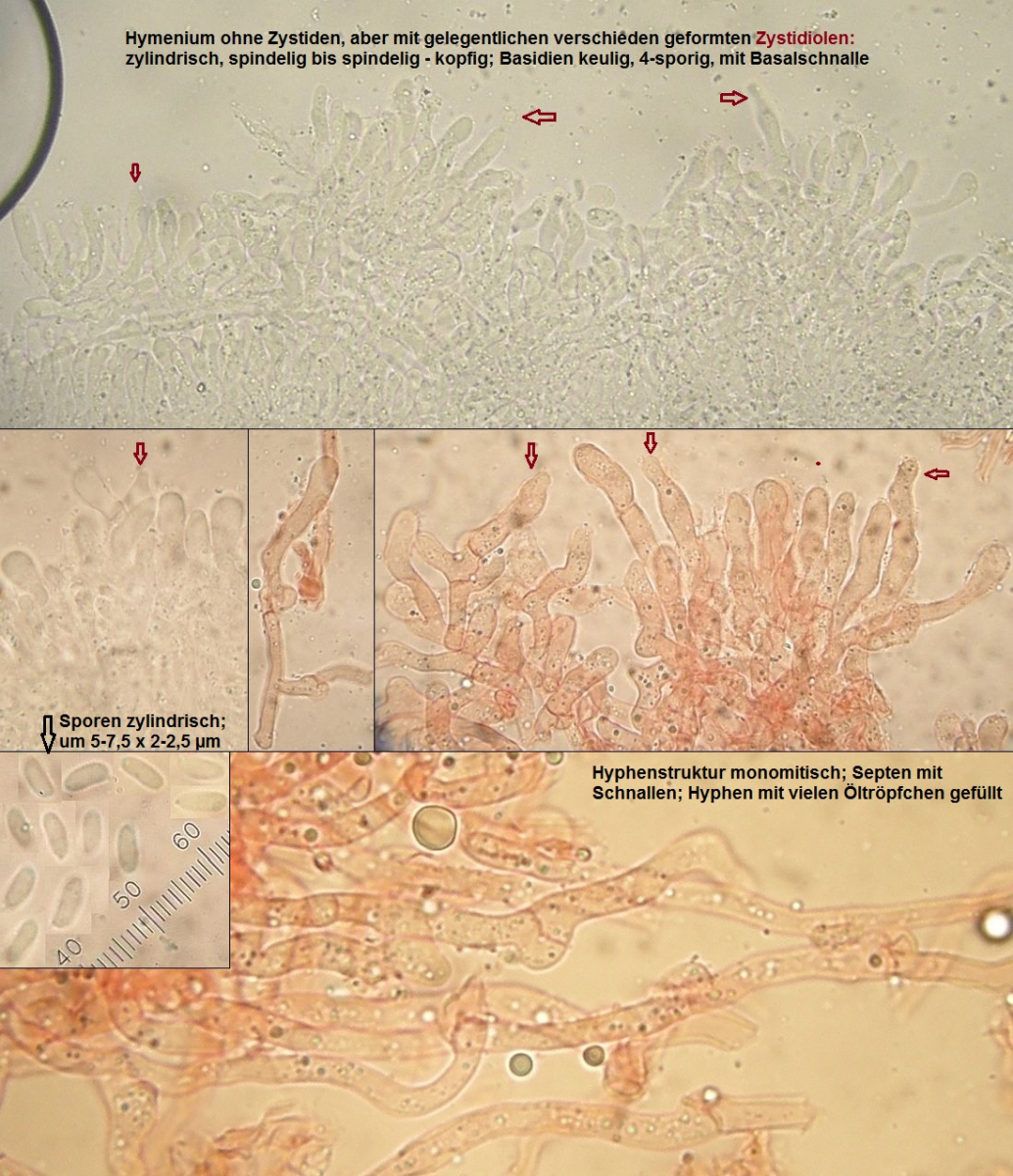 Hymenium homogen; Basidien keulig, überw. 4-sporig, ohne Basalschnalle; Zystiden fehlen (Zystidiolen können vorkommen); Sporen subglobos bis verlängert, glatt, dünnwandig, inamyloid; vorwiegend um 6-7 x 5-6 µm