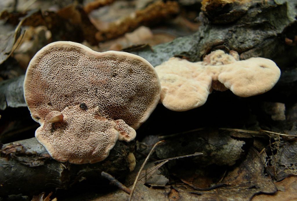>Antrodia malicola = Zimtfarbige Braunfäuletramete<