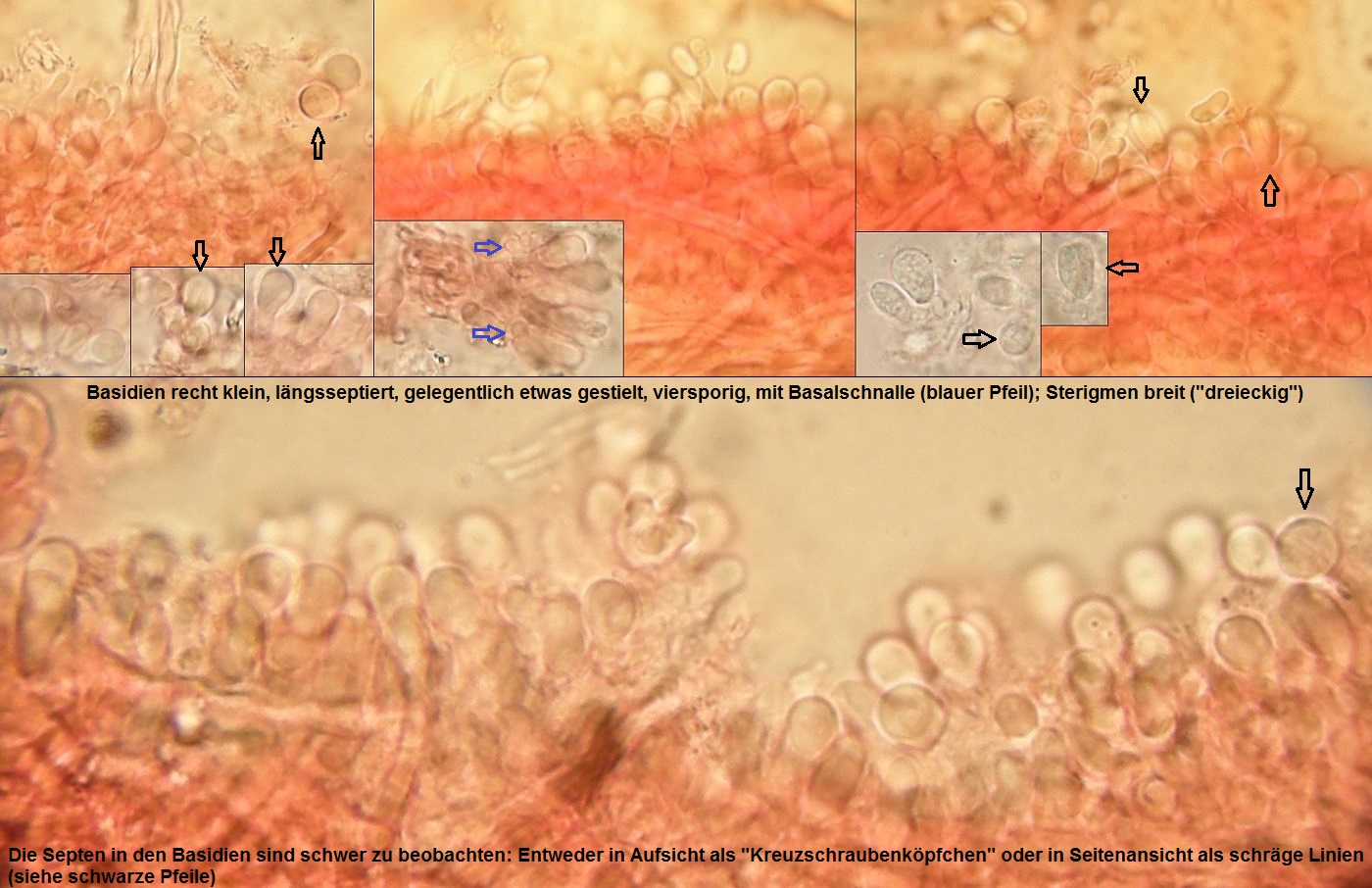 Besonderen Dank an Ursula Sauter, denn beim ersten Fund hatte ich den Pilz entnervt beiseite gelegt. Ausgehend davon, eine fruchtkörperlose Tremella gefunden zu haben, die in einem verfallenen Porling wohnt, passte da nichts zusammen (Sporenform!). Ursula hat letztlich die Bestimmung geschafft.