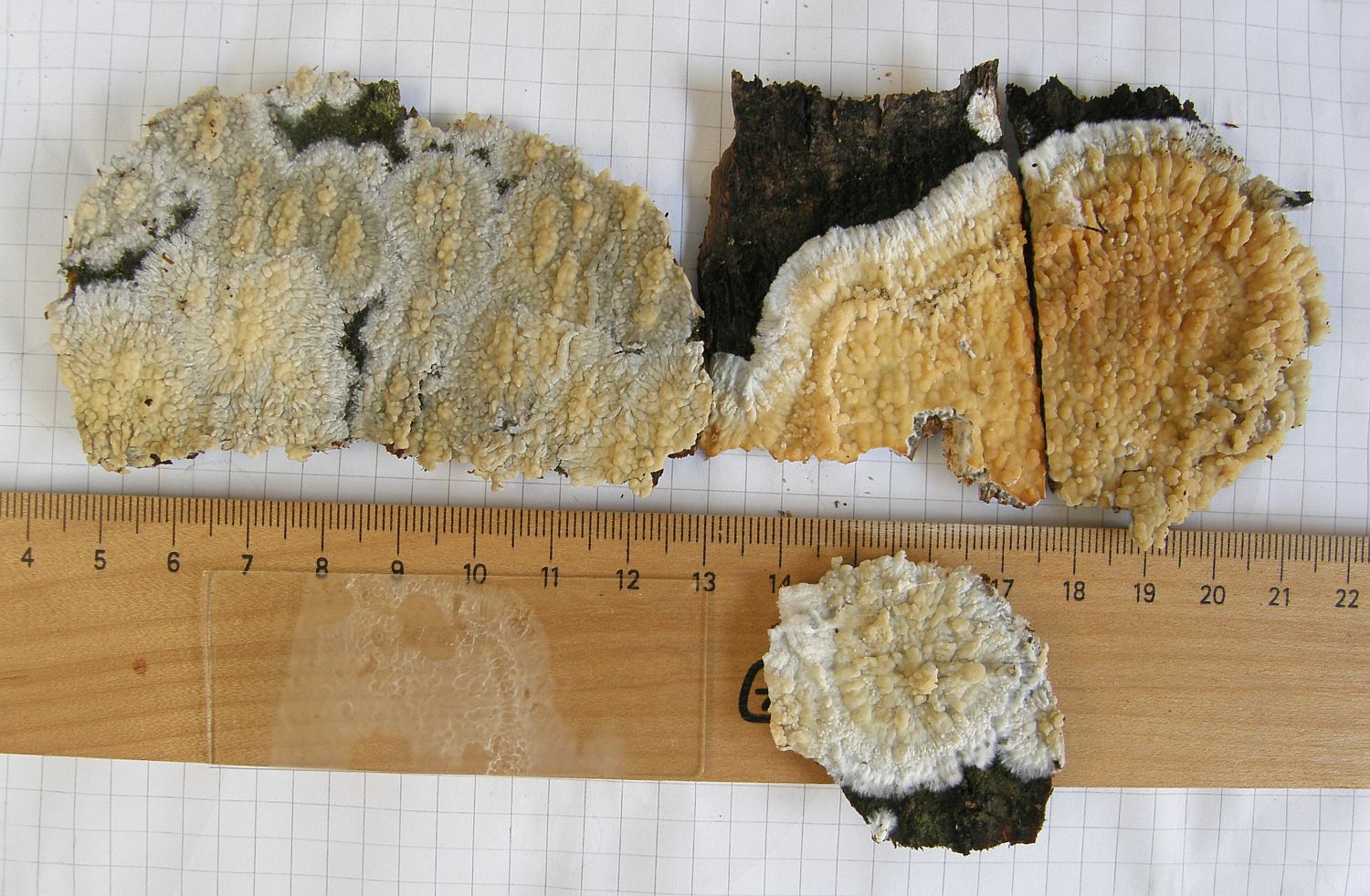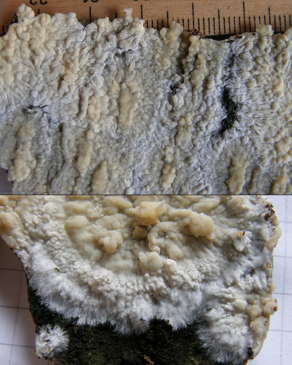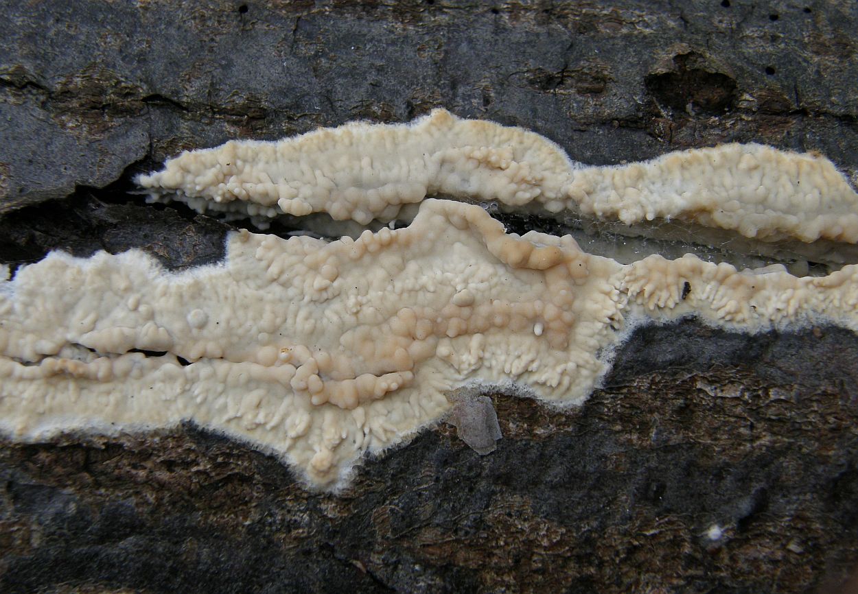 Mein Verdacht dazu wäre mal Hyphoderma mutatum.