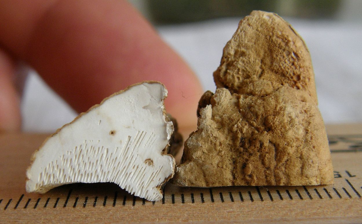 Als ein paar Leute mit mir Stöckchen gespielt haben, war das erst recht erfreulich. Beim ersten Stöckchen kam Basidioradulum radula (Reibeisenpilz) raus: