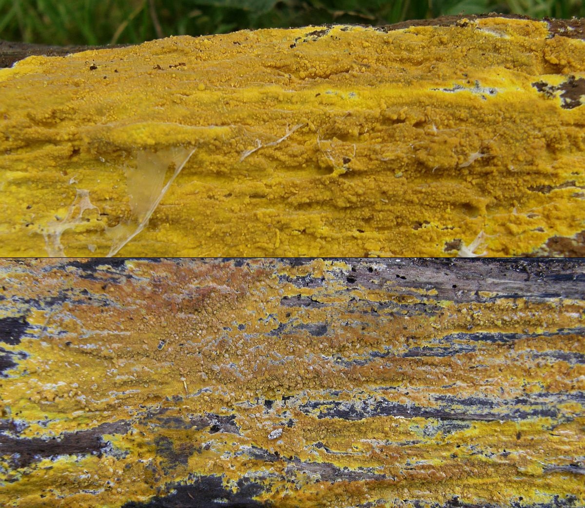 Gelbe Rindenpilze mit Warzen oder kleinen Stacheln / Zähnchen gibt es schon eine ganze Reihe, aber wenn man neben den Farbverläufen, Oberflächenstruktur und Konsistenz auch einen Blick auf die Hyphenstruktur, Zystiden und Sporen wirft, ist die Bestimmung eigentlich kein Problem.