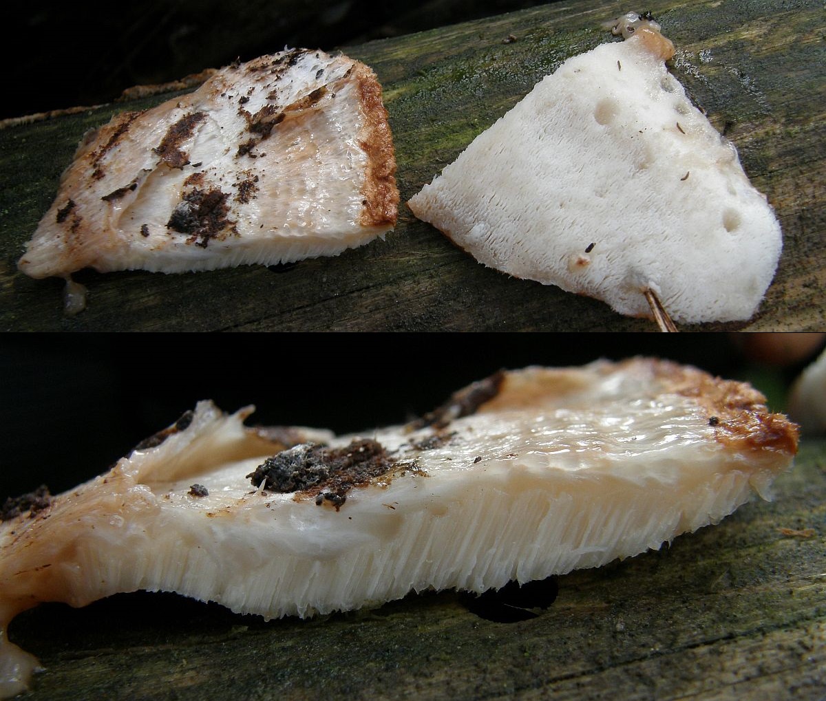 Verwechslungen: Frische, wabbelig-weiche Fruchtkörper mit ihren gelatinösen Zonen sind im Grunde schon gut makroskopisch zu erkennen. Jedenfalls ist mir bisher kein anderer Porling mit so einer weichen Konsistenz begegnet. Dazu kommt das Verfärbungsverhalten der Fruchtkörper, Porenform und das Aussehen der Ränder bzw. Hutkanten.
