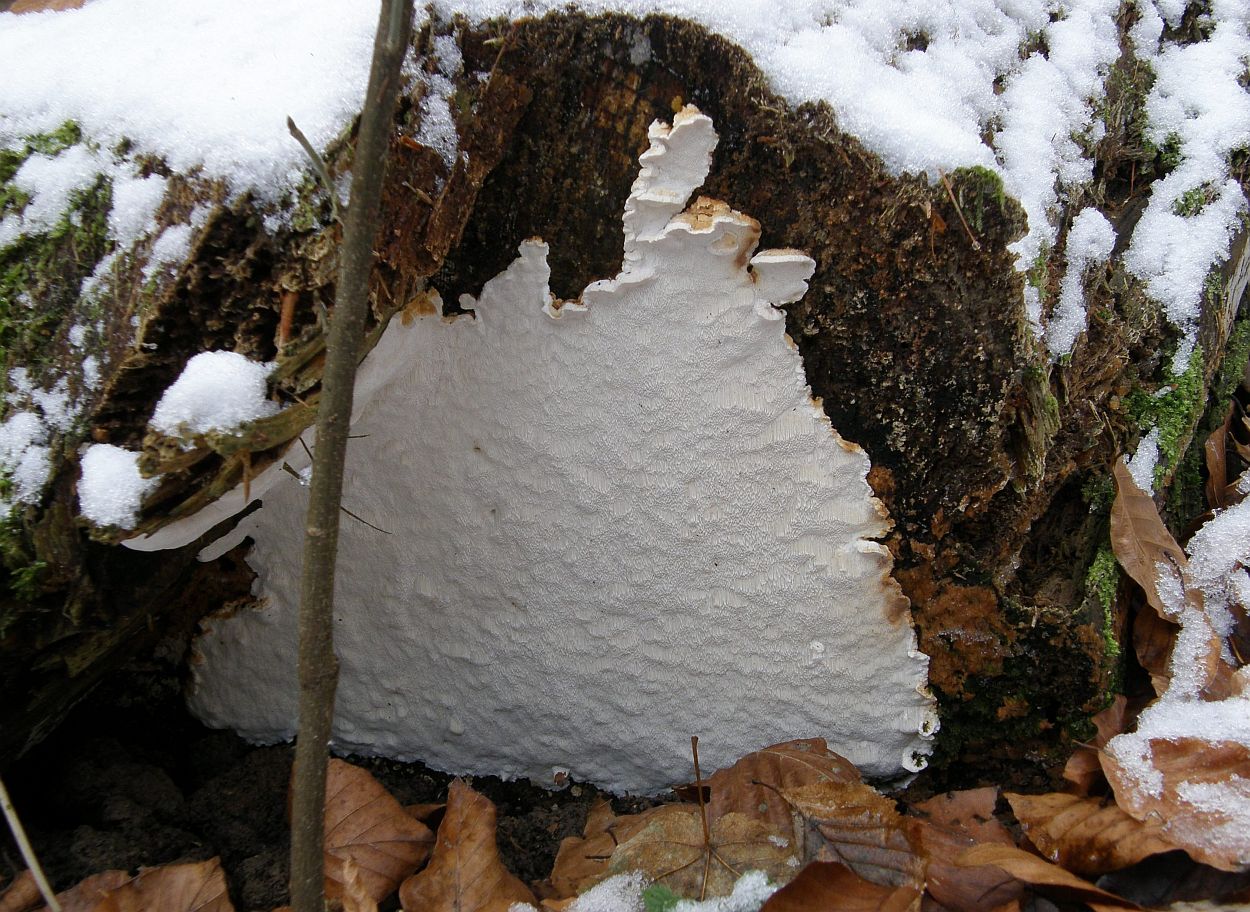 >Tyromyces fissilis = Apfelbaum –“ Saftporling<