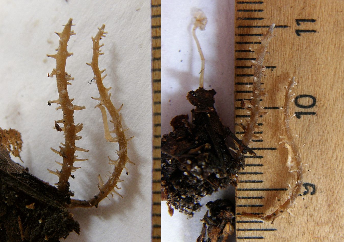 Tricholoma squarrulosum kann man hier ausschließen, denn da sehen die Stiele ganz anders aus. Tricholoma atrosquamosum ist ein "Bergpilz" der basischen Nadelwälder (bevorzugt wohl Tannen als Mykorrhizapartner). Um Tricholoma orirubens und basirubens zu unterscheiden, braucht man die Farbe des Basismycels - was nach meinen Beobachtungen aber leider auch nicht immer eindeutig ist: Ich habe auch schon Kollektionen von orirubens beobachtet, wo zwischen den einzelnen Fruchtkörpern die Farbe des Basismycels zwischen creme über blasscremegelb bis gelb variiert. Allerdings sollen laut FNE4 die Stiele von orirubens durchgehend glatt sein, während basirubens gerne mal kleine, dunkle Farbschüppchen oder Pünktchen an den Stielen bilden soll.