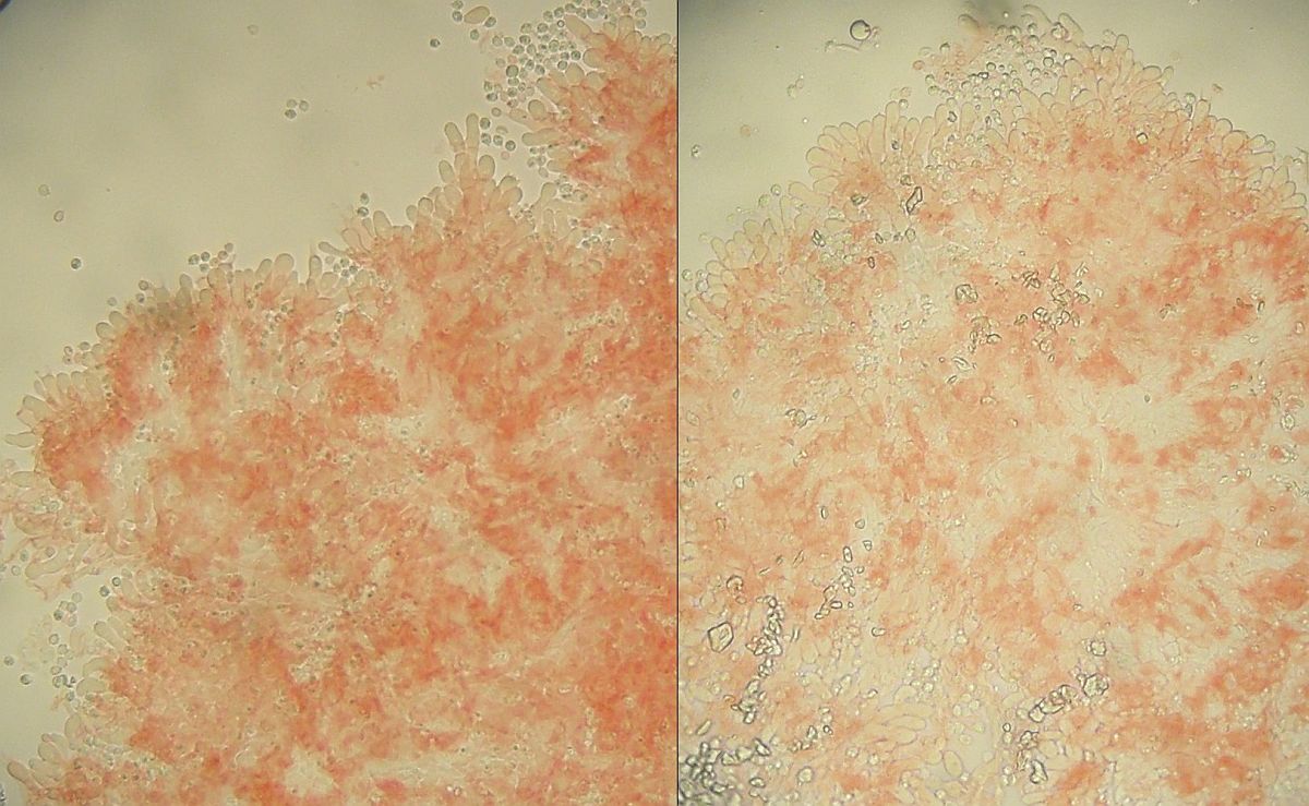 Mikroskopisch korreliert damit die Anzahl und Verteilung der Sphaerozysten im Velum.