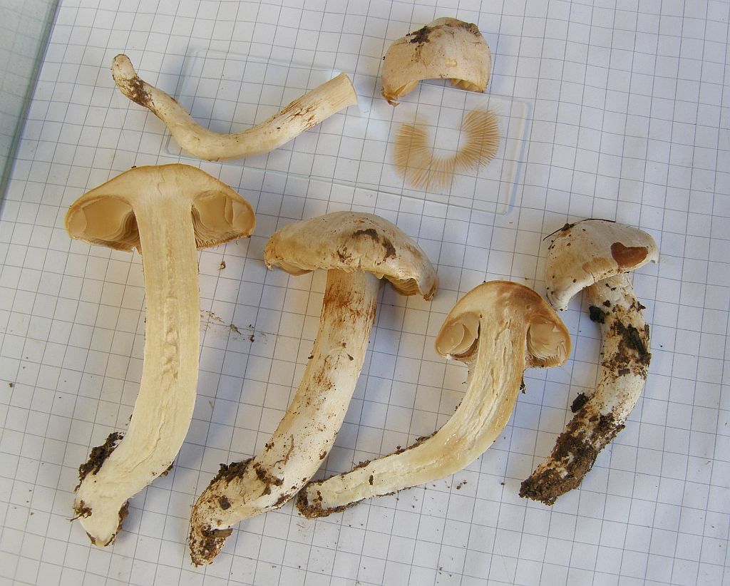 Wächst quasi vergesellschaftet mit Cortinarius variicolor um die Hainbuche herum. Lustig, daß zwei so ähnlich riechende Pilze erstens so unterschiedlich aussehen und zweitens vergesellschaftet auftreten. Normalerweise mache ich um Telamonien einen Bogen, aber diese Kollektion war einfach zu hübsch, um nicht einen versuch zu starten. und lustigerweise bin ich noch nie so glatt durch einen Gürtelfuß - Schlüssel gestolpert. Dennoch soll das eine schwere und diffuse Gruppe zu sein, aber hier passt inklusive Geruch alles so wunderbar, daß ich das cf oder das s.l. mal wegzulassen gedenke.