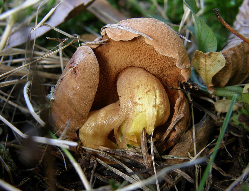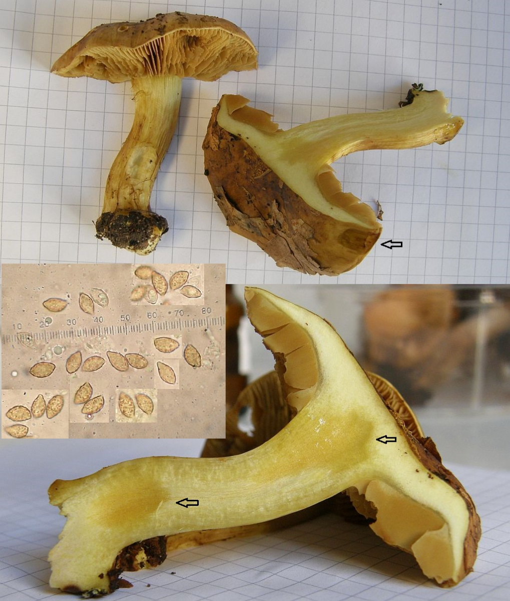 Vierdns: Eher nicht essbarer Cortinarius spec. = Klumpfus mit satt gelbem Fleisch