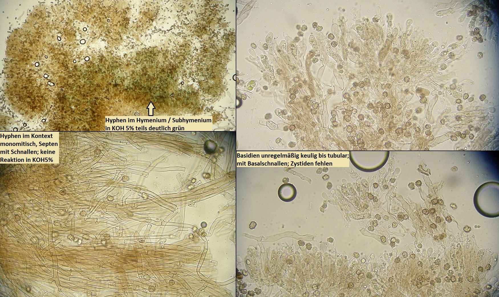 Die hier sind nicht befallen. Die sind quietschfidel und munter, meiner Einschätzung nach. Die Käppchen glänzten teilweise, weil nass, aber sind nicht breiig weich, sondern fest und elastisch. Mikroskopieren musste ich leider Totmaterial (also getrocknet), was freilich nicht so ein großer Spaß ist bei Ascos.