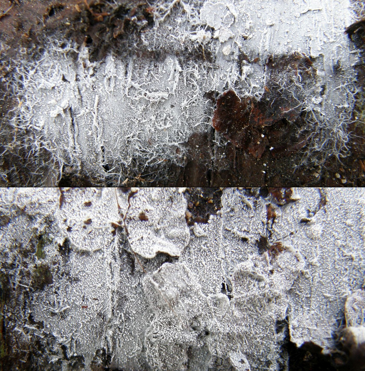 Was ich meine, ist natürlich ziemlich spekulativ: Der Fruchtkörper auf dem Bild wirkt so dünn und fast glasig in einigen Bereichen, so als müsste die Haptik ziemlich wachsartig oder fast gelatinös sein. Fruchtkörper von Sistotrema brinkmanii - egal in welchem Stadium - habe ich bisher immer irgendwie krustig oder faserig bis häutig erlebt.