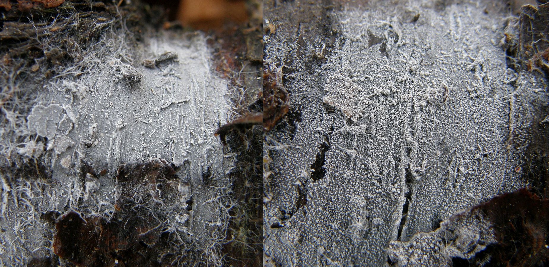 Solche Krusten sind mikroprlichtig, und oft kommt einfach Radulomyces confluens raus, aber manchmal sind da auch schicke Überraschungen versteckt.