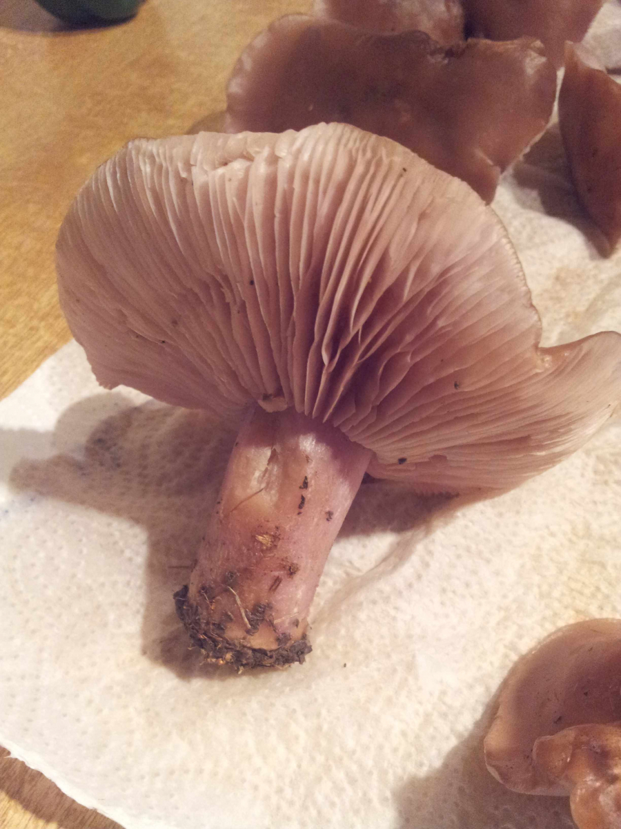 es ist tatsächlich so, dass die Steile einen lila Schatten haben. Die sehen heute im Haus bei lampenlicht ganz anders aus als gestern vor Ort. Ich habe noch ein paar Fotos gemacht. Ihr hattet recht, es ist wohl ein "Lilastieliger Rötelritterling". Der soll ja recht gut munden. hier noch Fotos, wobei ich sagen muss, dass bei mir die Oberfläche des Hutes stark nach lila gehen. In Natur ist das mehr braun und beige, wie auf dem ersten Bild zu sehen.