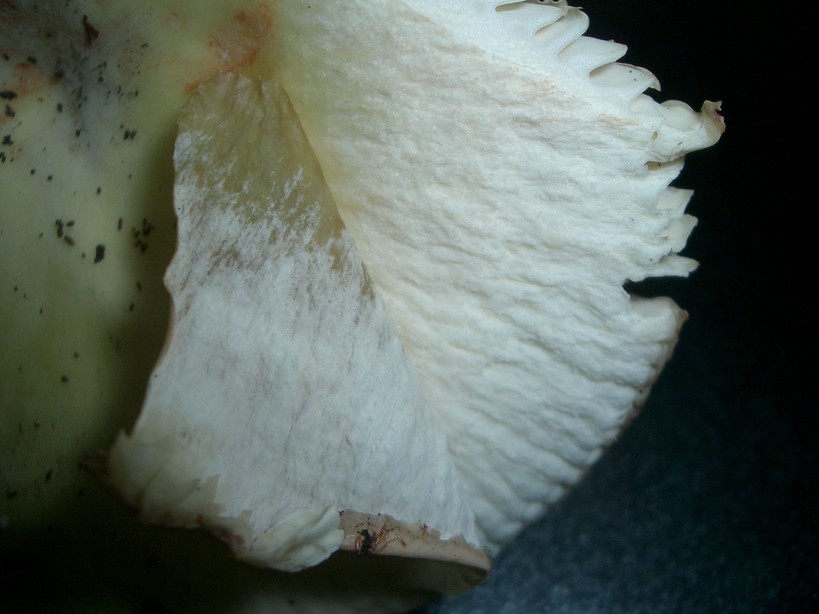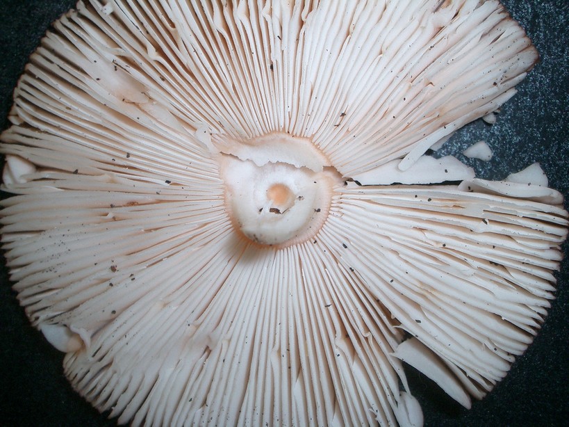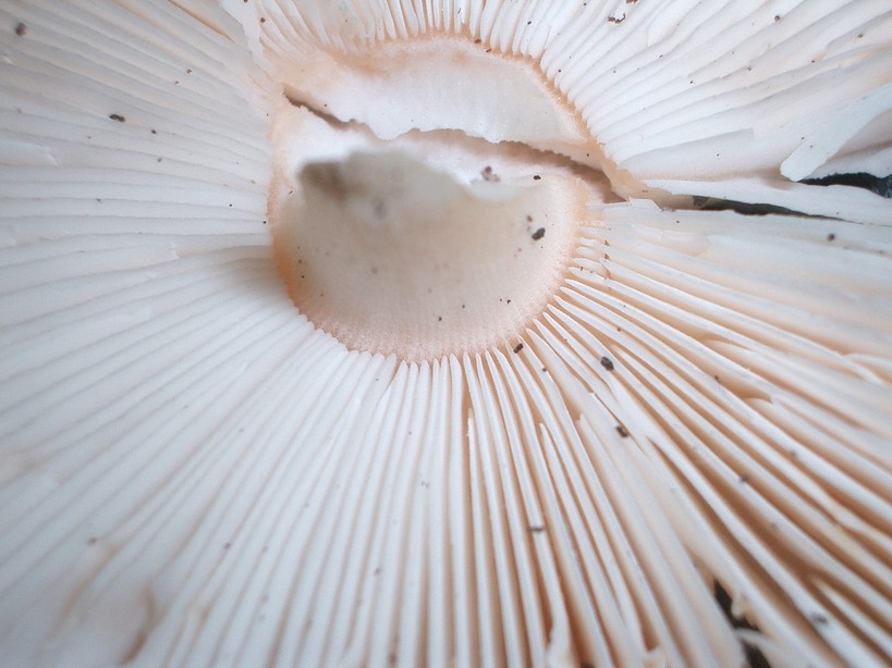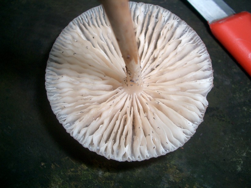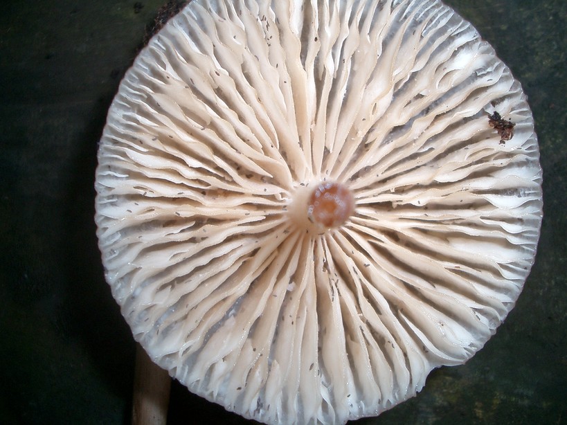 Die Lammelen stehen dicht, sind ca. 1-1,4mm hoch, weiß mit leichtem Gelbstich.