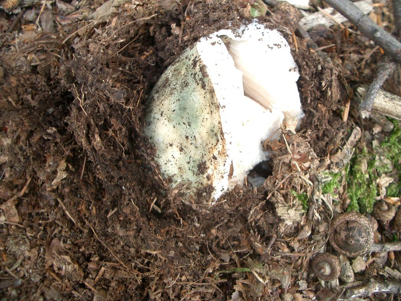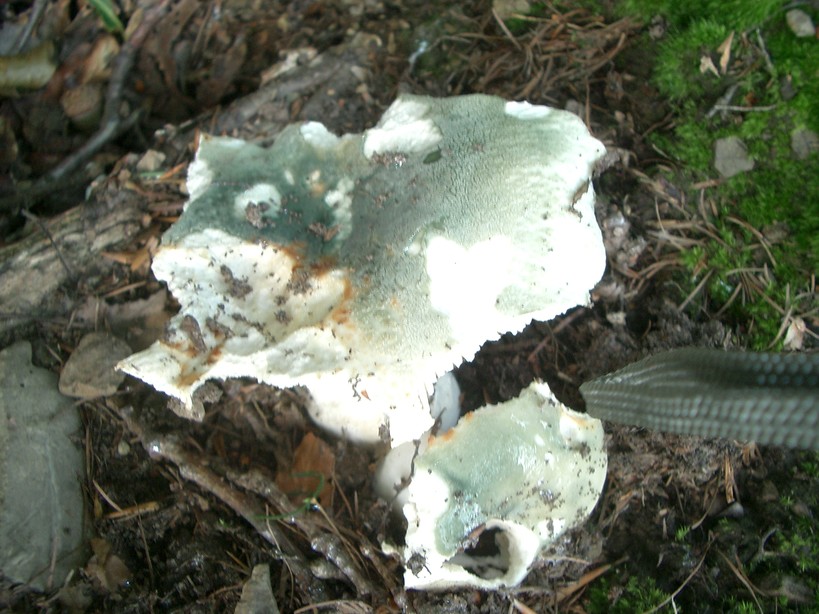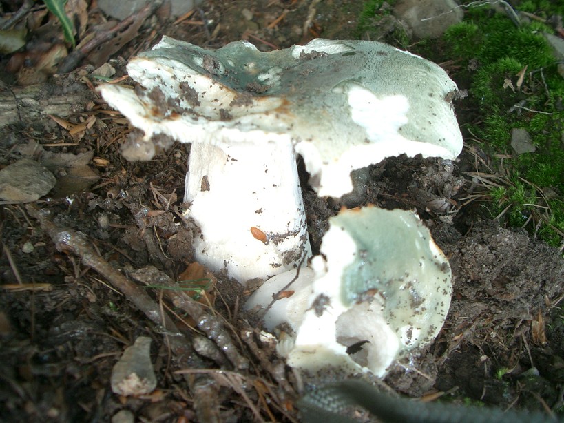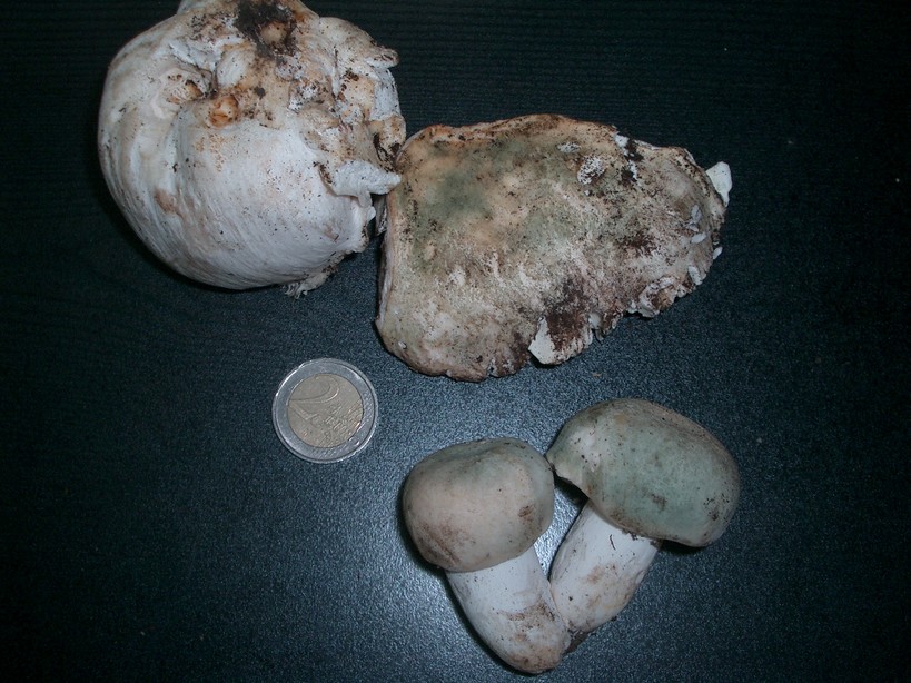 Diese größeren Exemplare halte ich für Russula virescens. Von denen habe ich schon total viele im Wald gefunden. Leider waren die wiederlichen Nacktschnecken aber schneller.