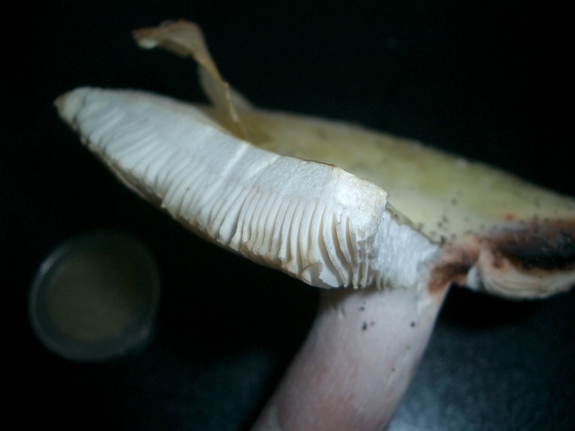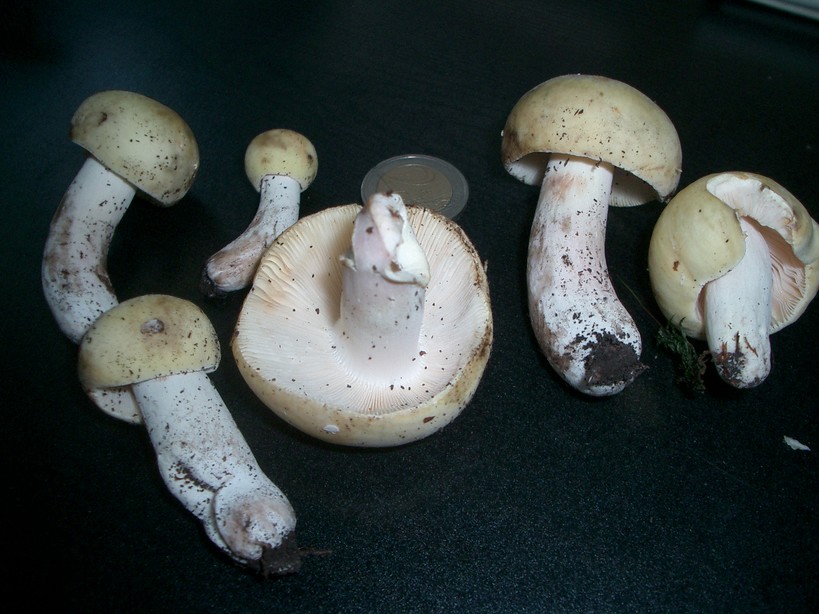 Der Stiel ist rosa gefärbt, was mich bei der Bestimmung bisher auf Granit beißen ließ. Hab leider noch keine Beschreibung mit gelbem Hut und rosa Stiel gefunden :(.
