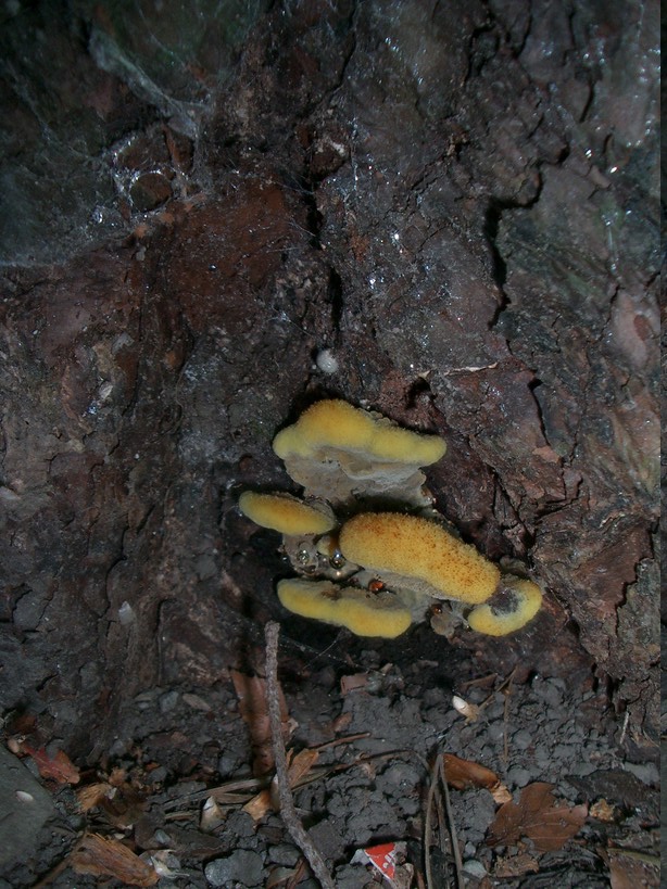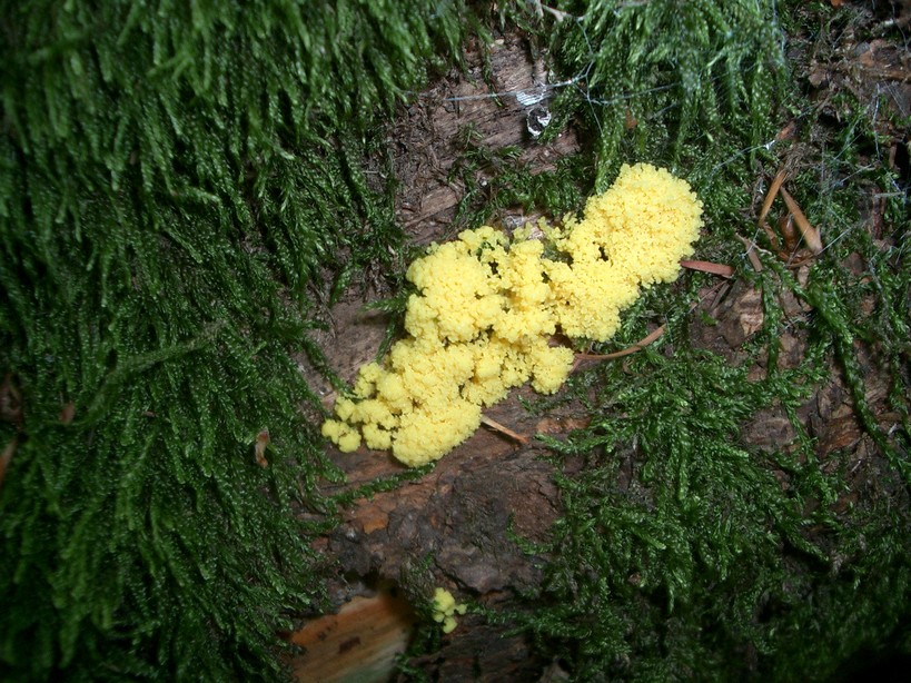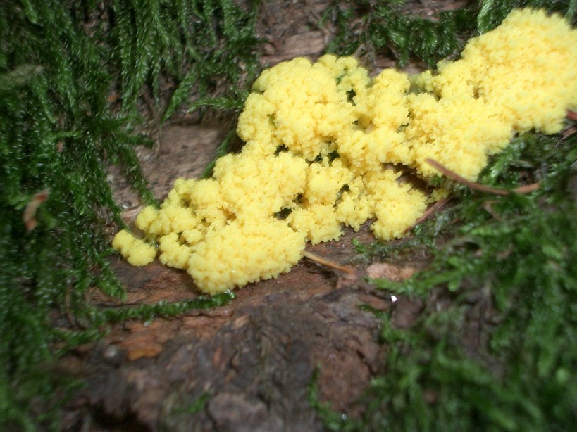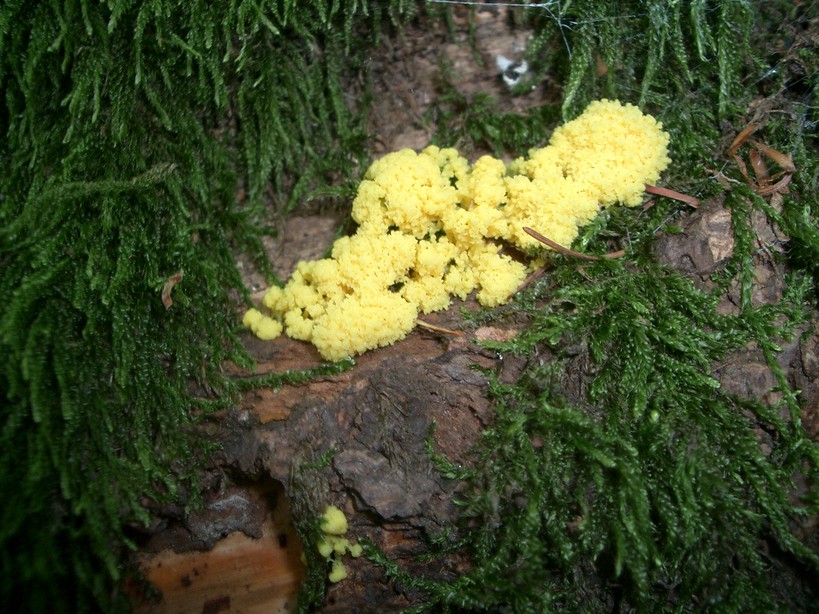 Zunächst dieser Schleimpilz. Könnte das die Gelbe Lohblüte (Fuligo septica) sein? Bzw. kann man den Schleimpilz überhaupt anhand des Bildes korrekt indentifizieren oder braucht es dazu mikroskopische Merkmale oder Testreagenzien?