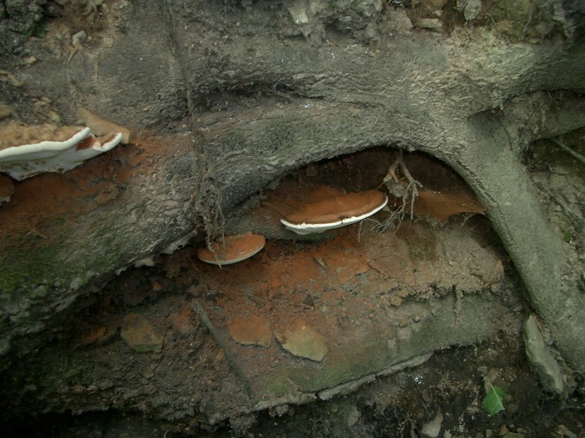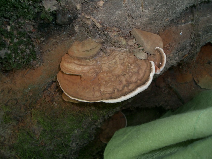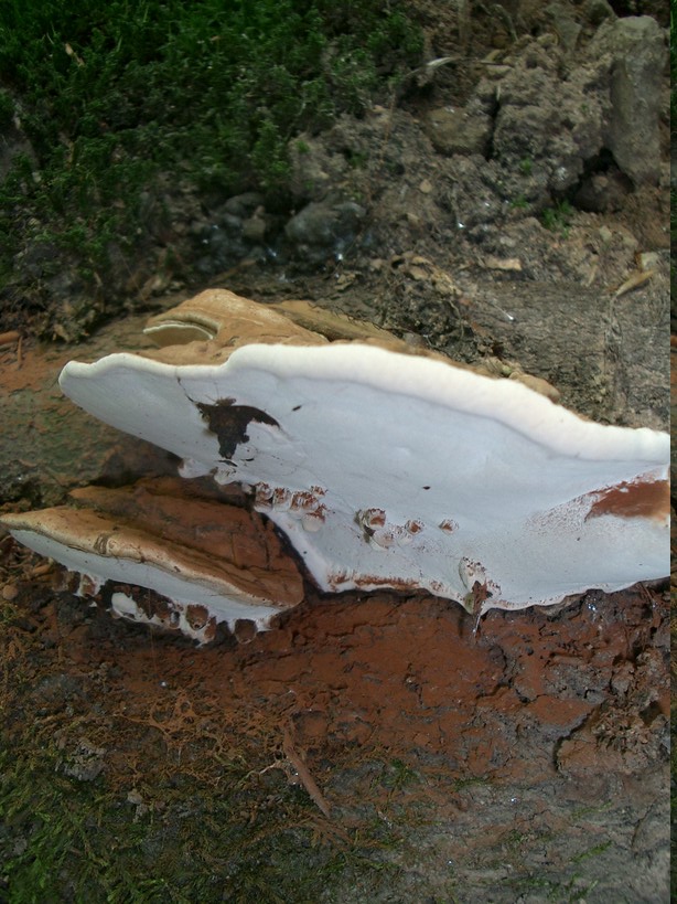 Der zweite könnte der Flache Lackporling (Ganoderma lipsiense) sein. Zu Beachten ist die helle Unterseite und das reichlich vorhandene, rostbraune, Sporenpulver. Was meint ihr?