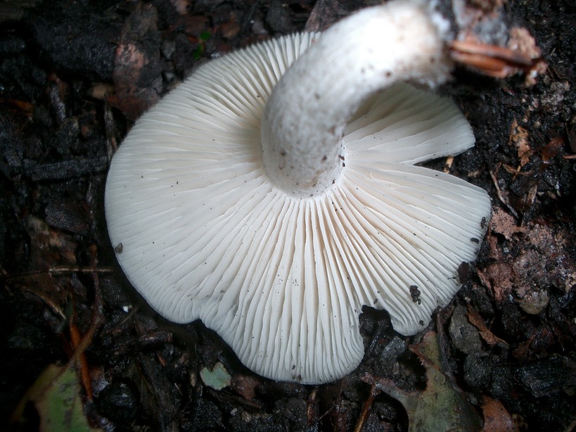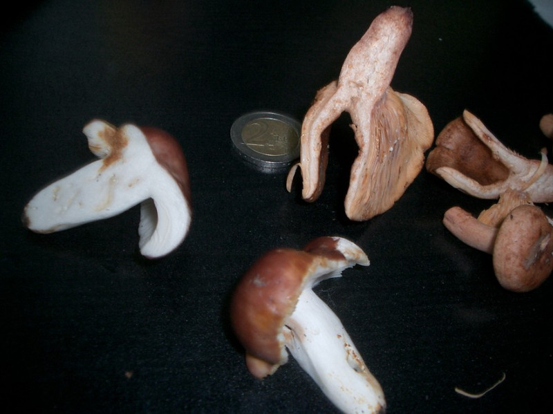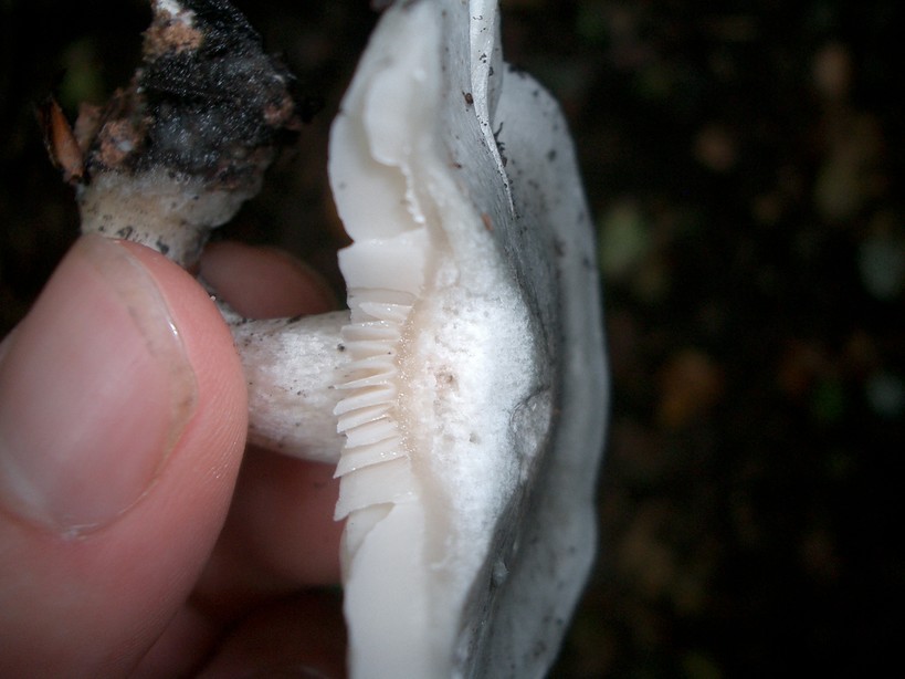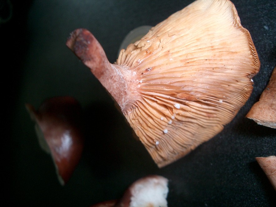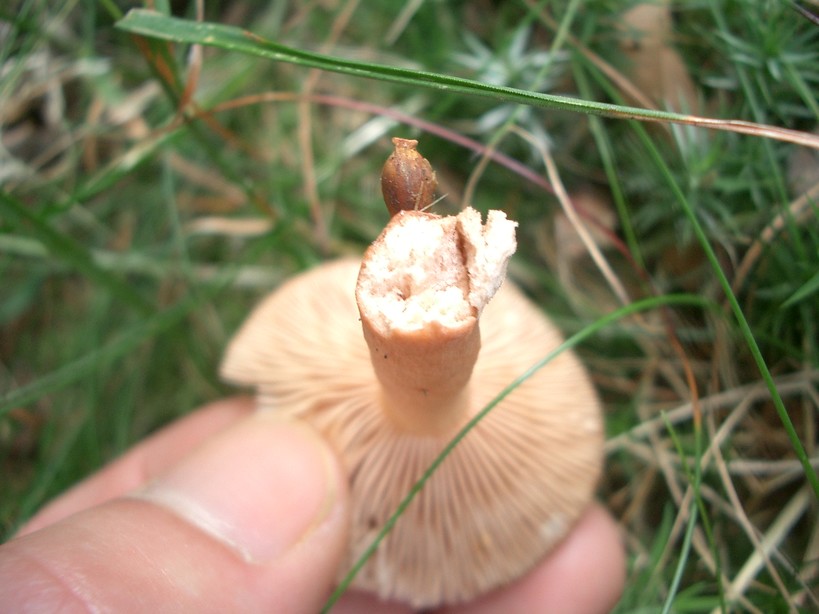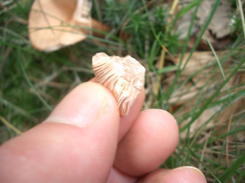 Könnte dieser Pilz ein Milchling sein und sondern Milchlinge auch bei trockenem Wetter Milch ab? Dieser tat es nämlich nicht: