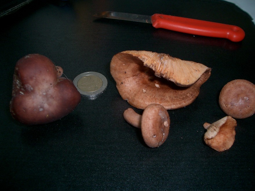 Der Geruch ist unauffällig. Der Geschmack mild. Von dieser Art habe ich kleine Examplare gefunden und ein etwas verkrüppeltes großes Exemplar:Russula A5.jpg