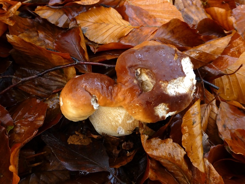 dank deines Postings habe ich heute auch noch einmal die Augen nach Steinpilzen offen gehalten und bin prompt fündig geworden - ebenfalls in einer dicken Schicht Buchenlaub an einem Graben.