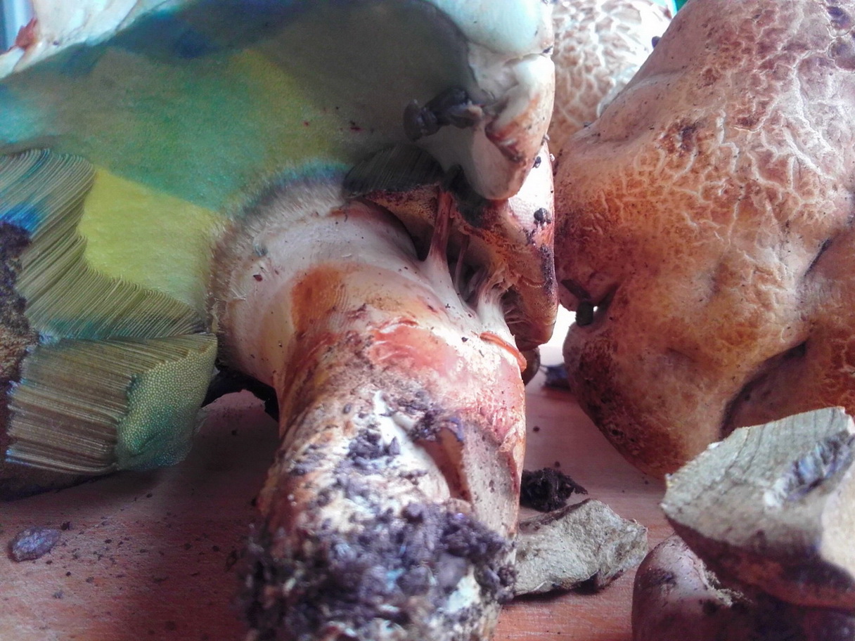 Aber das Rötliche unten im Stielanschnitt und in der Kappe kurz vor dem Blauwerden ist bei einem Jüngeren doch noch deutlich wenn auch nur ganz kurz zu sehen und die Beschreibung der häufigsten Standorte passt wie die sonstigen Eigenschaften auf meinen Fundort auch genau.