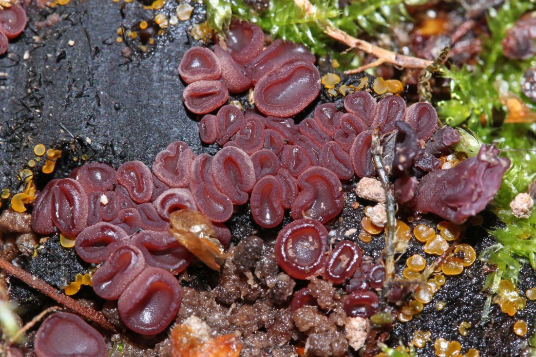 Diese schöne Kollektion wuchs unter einem Farnbüschel unbekannter Art an Rindenstückchen, die aber wahrscheinlich nicht zum Farn gehören. Auffällig sind die sehr schmalen Cheilozystiden, abgesehen davon könnte die Art zum Konzept von cycadicola passen, die Bestimmung ist hier noch im Gange. Wenn sich was tut, werde ich es hier bekannt geben.