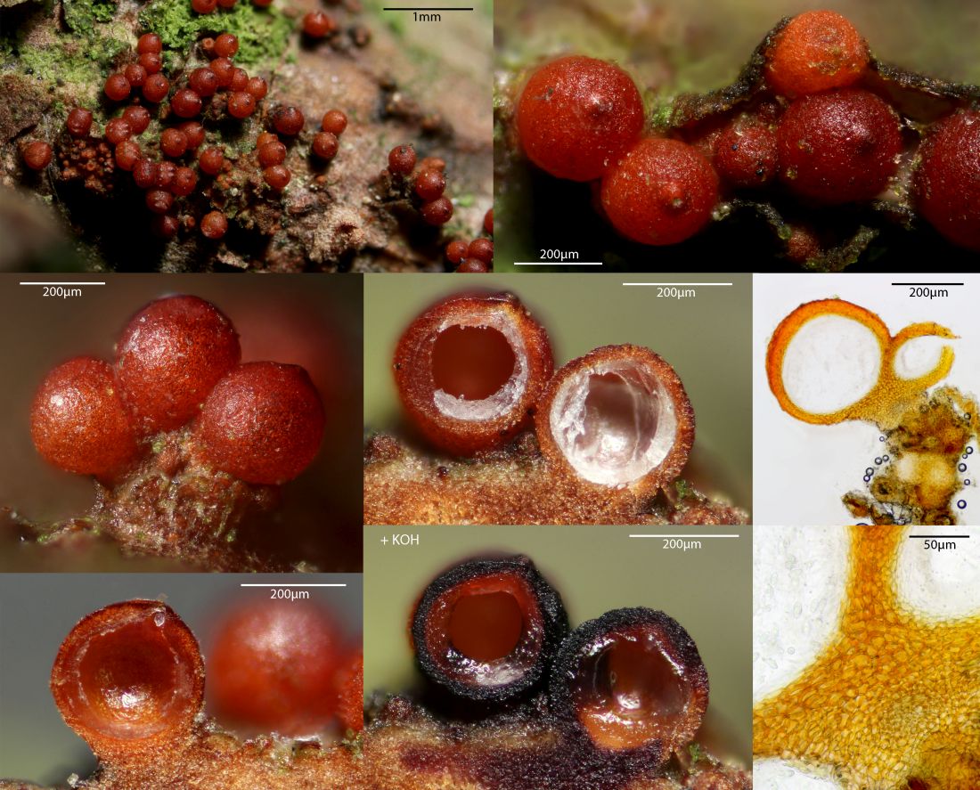 Anmerkung: Ausgeblasste oder nicht einheitlich gefärbte Kollektionen von rosea/luteorubella kann man nur über die Anamorphe sicher morphologisch trennen und da die kaum bei den Apothezien ausgebildet wird, ist eine Unterscheidung dann nur per Sequenz möglich.