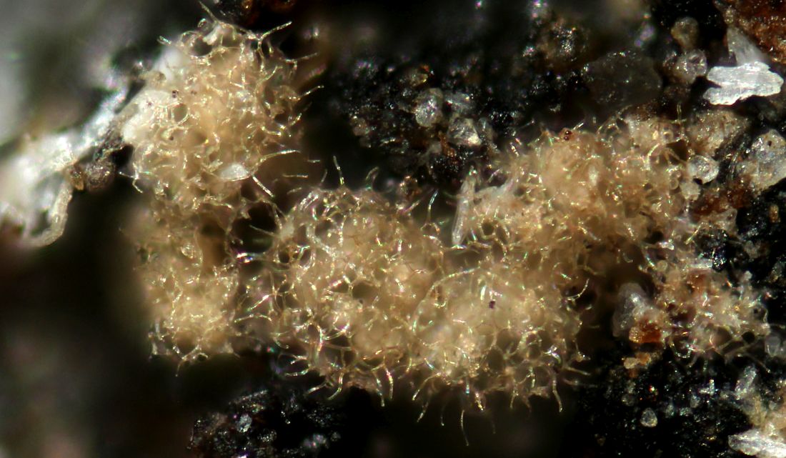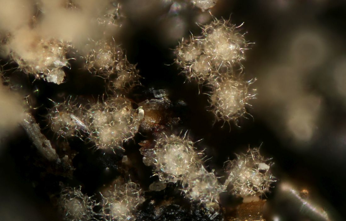 man erkennt deutlich mehr. Also das ist schon mal sicher ein Lachnum, die Haare sind jetzt gut zu sehen, fein warzig auf voller Länge. Apikal sind die nicht verdickt, das schließt auch schon wieder einiges aus.
