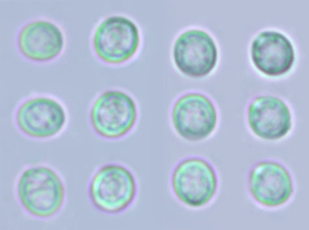 - Die Sporen liegen im Bereich 6-12 x >1,5-2. (Die Spore auf Bild 3 sieht merkwürdig aus, bin mir nicht sicher, ob die dazu gehört, die in den anderen Bildern könnten passen)