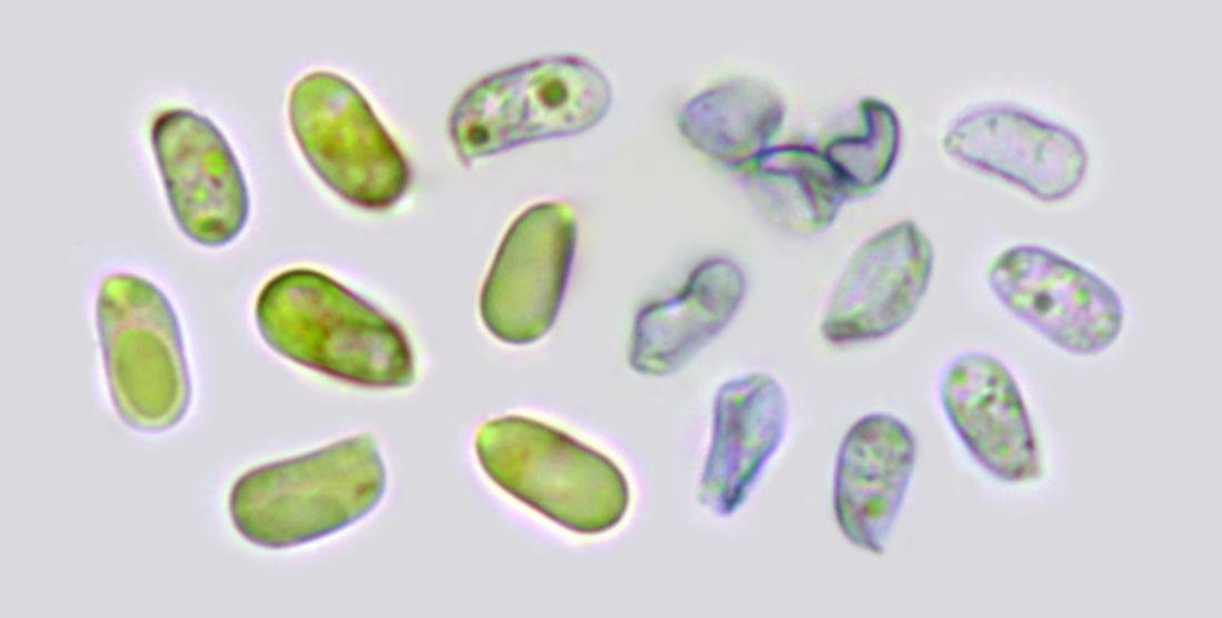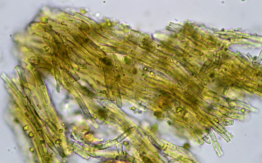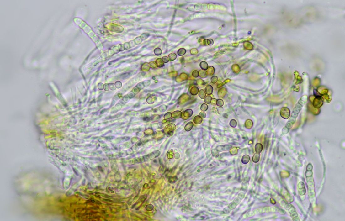 Und in KOH 3% (die Farbunterschiede in Wasser vs KOH sind bei allen Arten von Galerina, aber auch Conocybe, etc. vorhanden, aber je nach Art mal heller, mal dunkler in KOH)