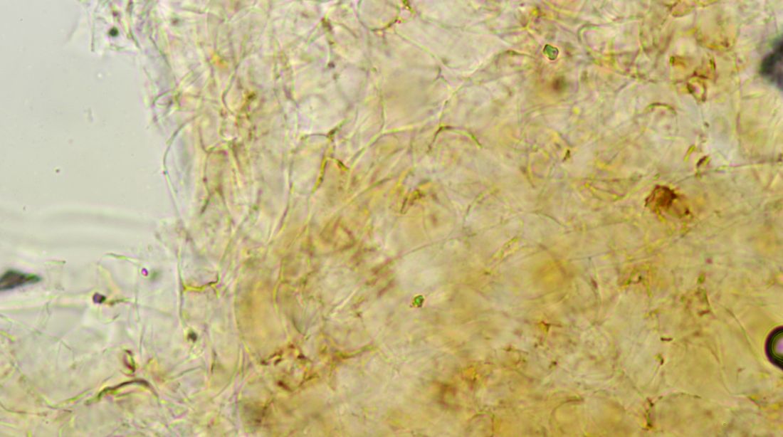 Die Lamellentrama ist z.T. auch aus inkrustierten Hyphen bestehend, ähnlich der HDS: