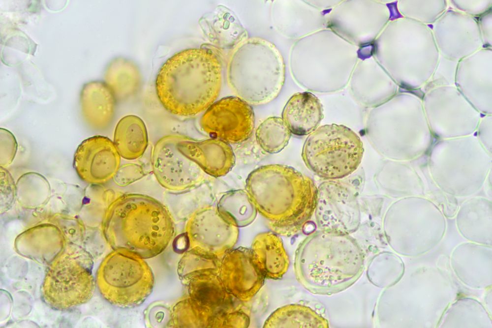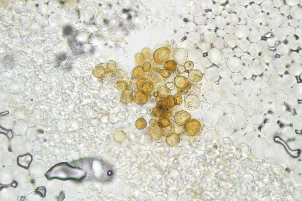 Habe nochmal die Reste des Exemplars gar untersucht und dabei eine Stelle mit einer gewaltigen Variabilität der Sporengrößen gefunden.