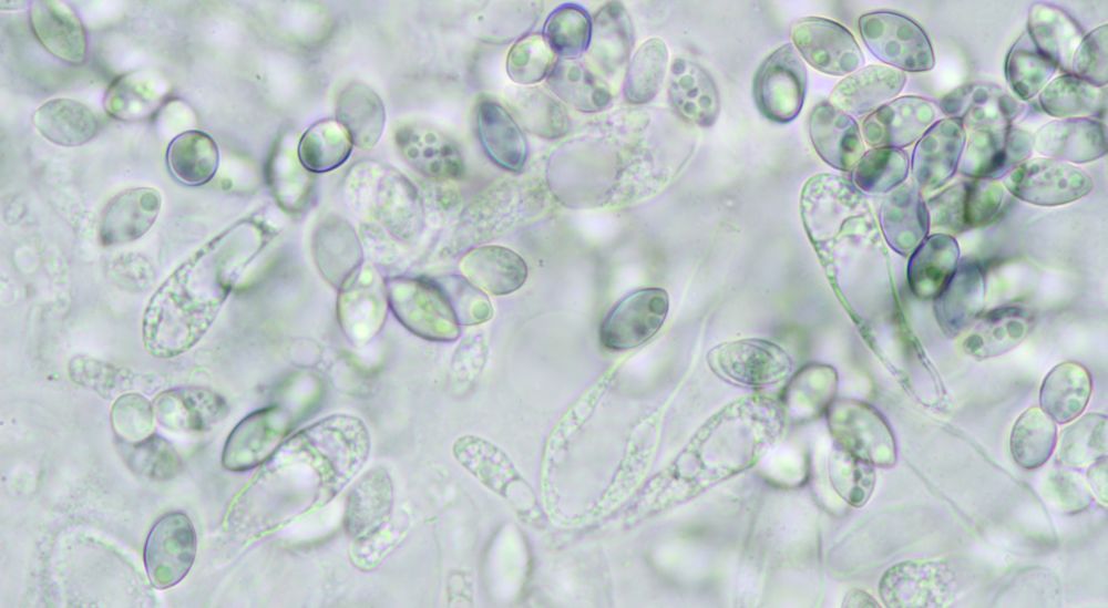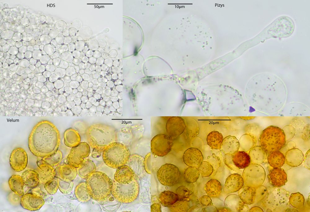 danke für den Hinweis. Ja, definitiv die gleiche Art wie der hier. Scheint also wirklich zwei Typen davon zu geben. Eine mit hellen Sporen und gelben Paraphysen und eine mit dunkleren Sporen ohne solches Pigment. Und Florians Fund steht da dazwischen, daher wird es so schwierig da eine klare Trennlinie zu ziehen. Genetisch würde ich da aber mit Sicherheit mit mehr als einer Art rechnen.