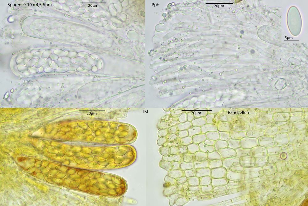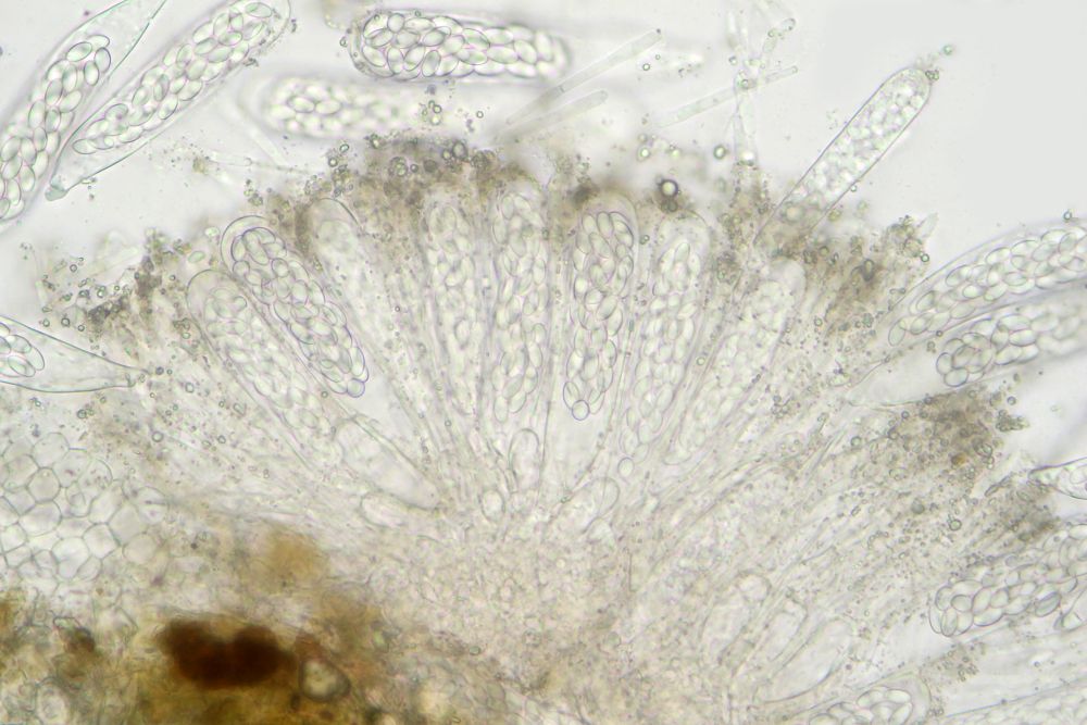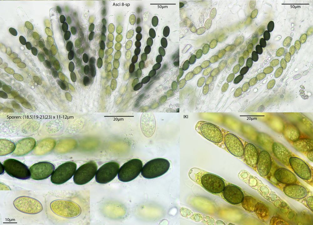der schwedische Elchdung von Maren, der mich über Nobi erreicht hat, treibt bereits erste Früchte. Auch wenn es hier noch nur ein Einzelexemplar war, dessen Peridie auch schon etwas ältlich aussah, ist das sicher der Startschuss. Möglicherweise war das Exemplar schon vor dem Trocknen dran, aber die Sporen und Asci schauen frisch aus.