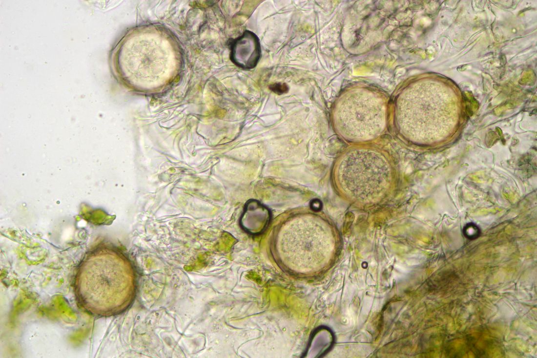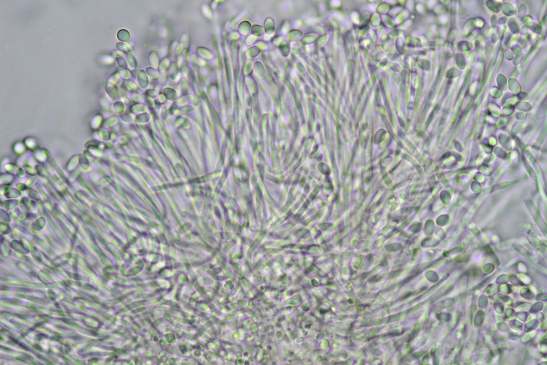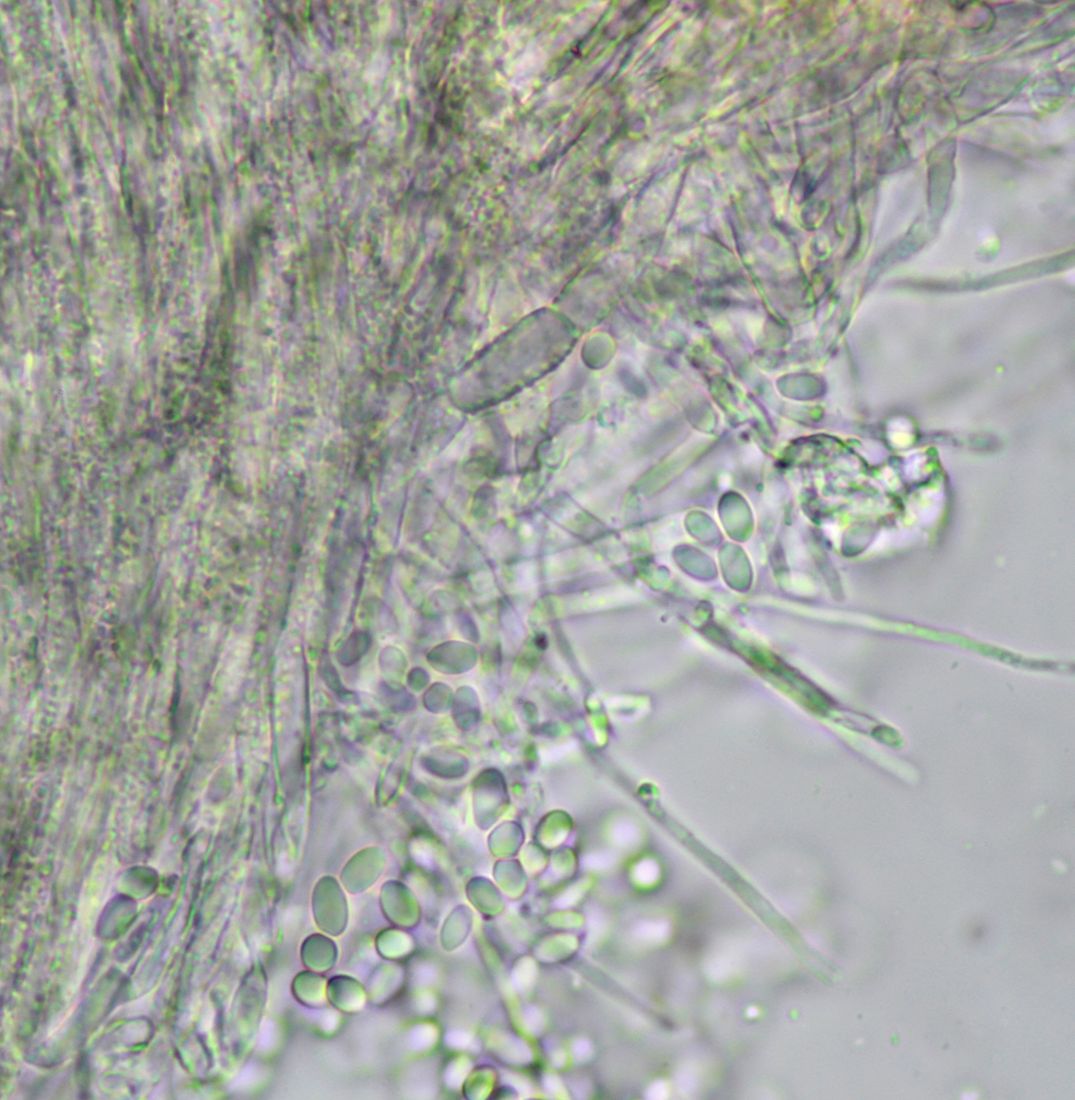 Leider nichts, was bestimmungsrelevant wäre. Meine Ideen zu dieser Art hab ich oben geschrieben, aber da ich von hier aus nicht beurteilen kann, ob Cheilos wirklich fehlen oder unauffällig sind oder übersehen wurden, tu ich mich schwer, hier was einzuordnen, zumal es schon makroskopisch plus Sporen schwierig ist, was zu finden. Mehr Sporen wären natürlich gut, aber wenn nicht mehr zu holen ist, dann ists natürlich schwierig.
