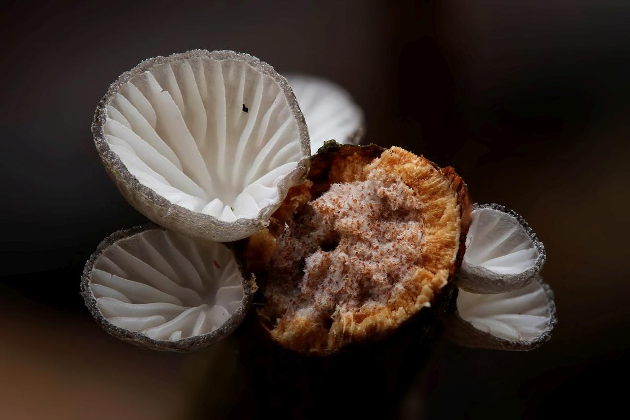 Hohenbuehelia cyphelliformis, Schüsselförmiger Harpunenschwamm