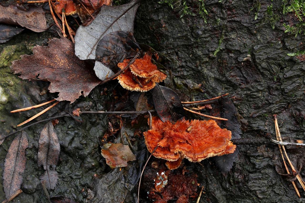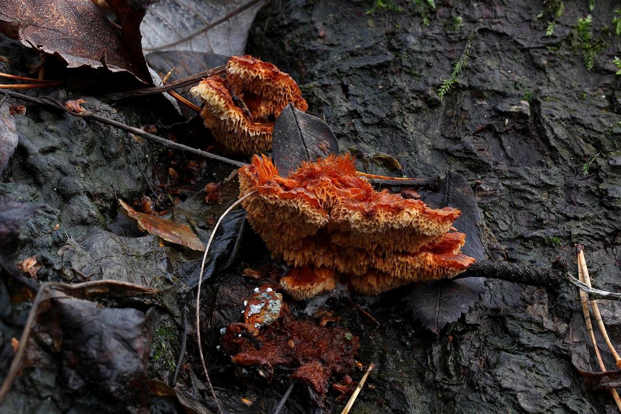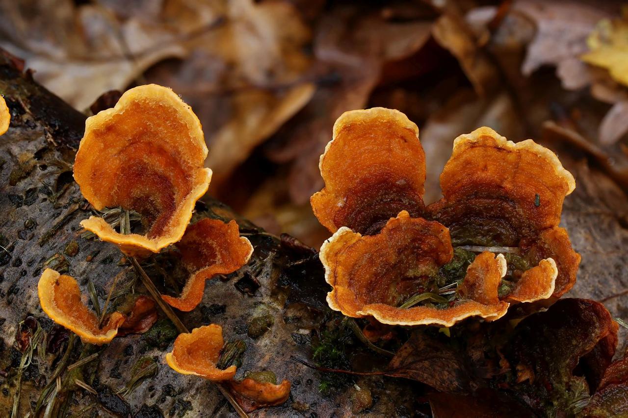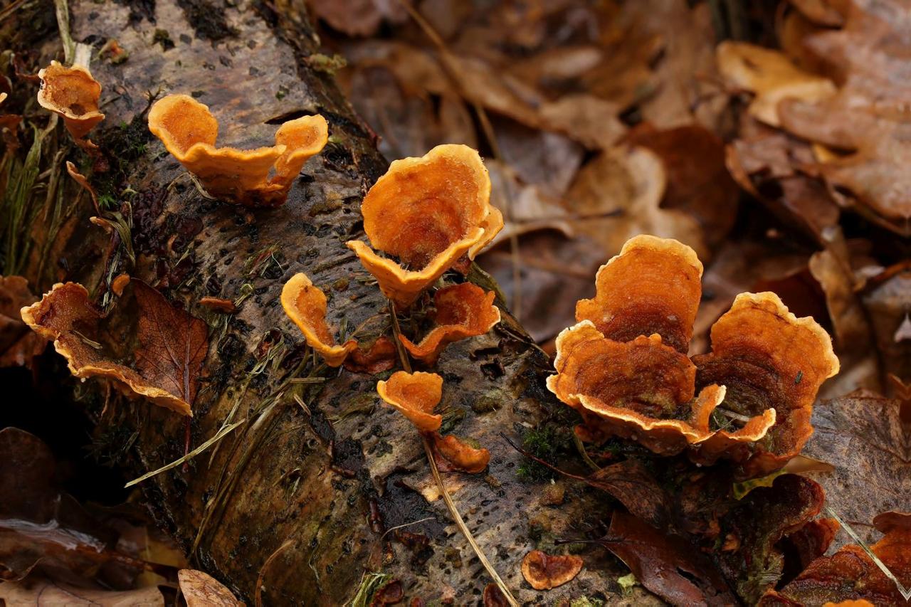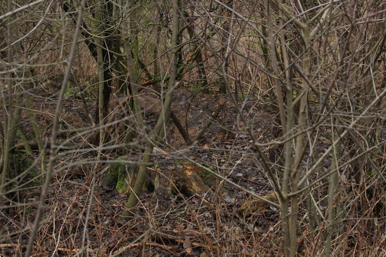Die beiden folgenden Fund gelangen mir nahezu gleichzeitig in einem ehemaligen Kahlschlagsgebiet, das mittlerweile von dichtem Gebüsch und schon ein paar Meter hohen Laubbäumen verschiedenster Art besiedelt wird. Bislang habe ich es nicht geschafft, dort intensiver nach Pilzen zu suchen, nach diesen Funden werde ich das Areal sicher häufiger aufsuchen. Auch sind dort evtl. Kelchbecherlinge zu erwarten, da ich sie in einem anderen nahen Erlenhain bereits gefunden habe. Das Gebiet liegt unmittelbar neben einem Fichtenwald, der im Herbst sehr reich an Speisepilzen ist und den ich schon oft abgesucht habe.